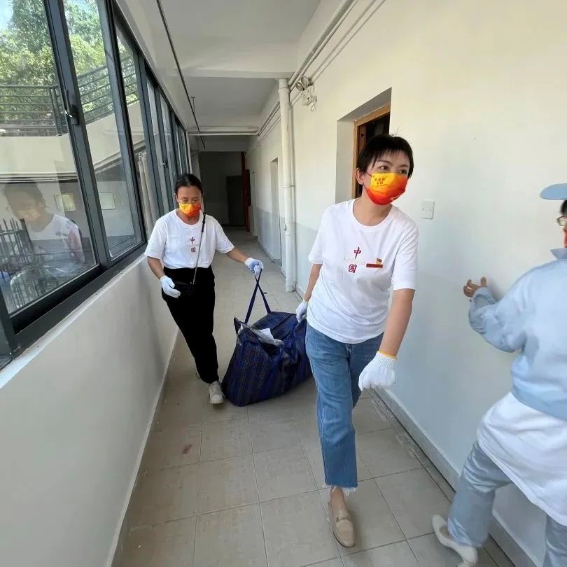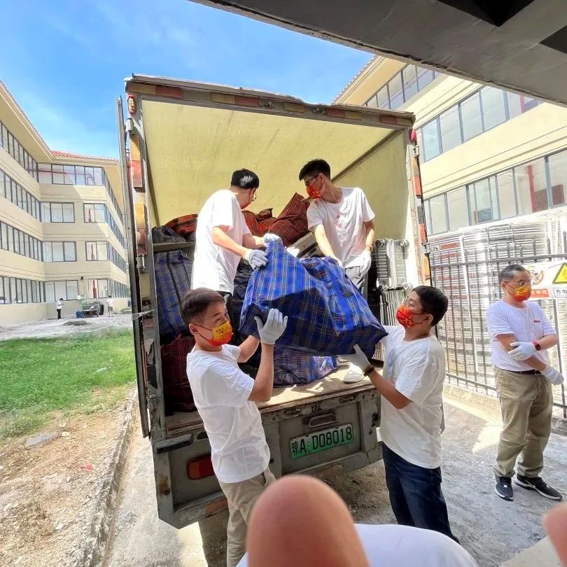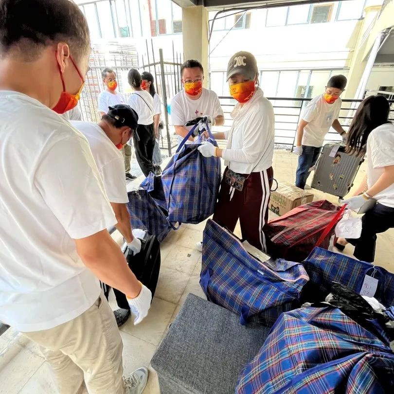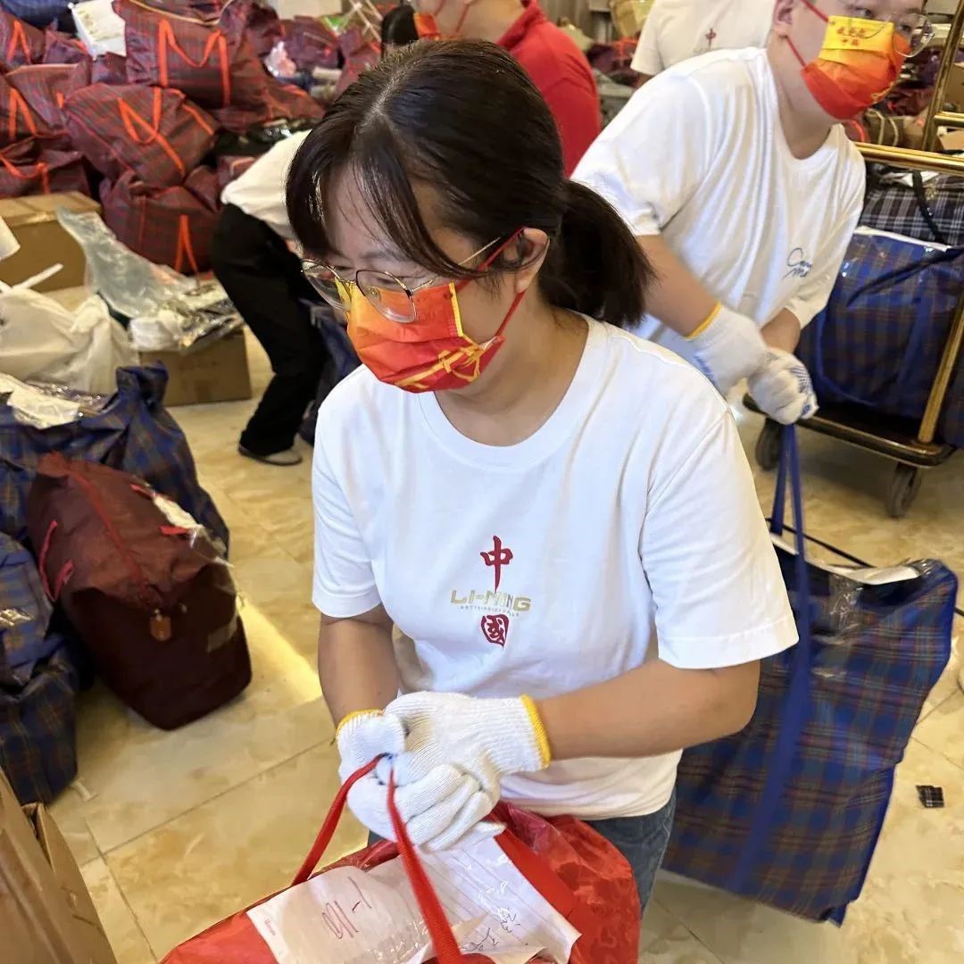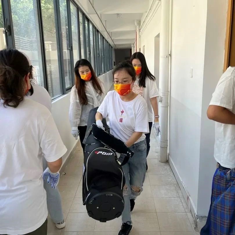 为了学生们返校过程轻松顺利,老师们齐上阵,将老生因为装修宿舍搬出来的行李点对点的根据名字放到所属宿舍。