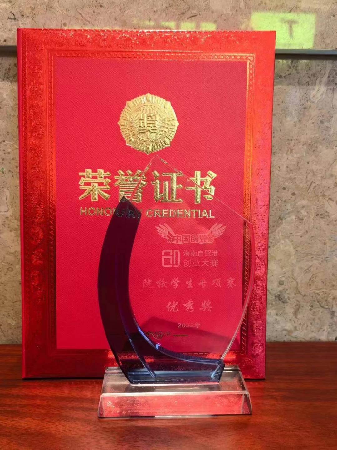 海南自贸港创业大赛的奖状奖杯