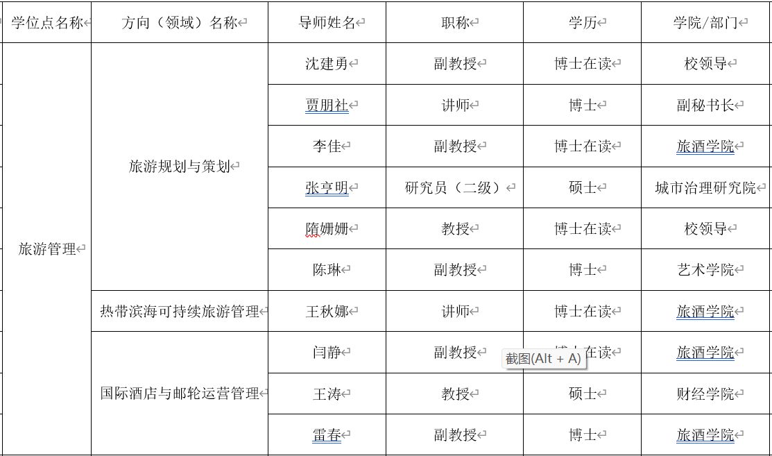 在共同和协同的基础上,为保障师资配备和正常的教学供给,9159金沙游戏场研究生处在2023年1月份进行了第二批硕士导师的遴选,目前MTA专硕点具备校内导师28名,校内导师均为在职校内教师,具有副高或博士以上职称或学历,具备十年以上的高校教学经验,导师团队近5年在旅游规划与开发、热带滨海可持续发展和国际酒店和邮轮运营与管理三个方向及相关领域承接省厅级课题和各级横向课题110余项。