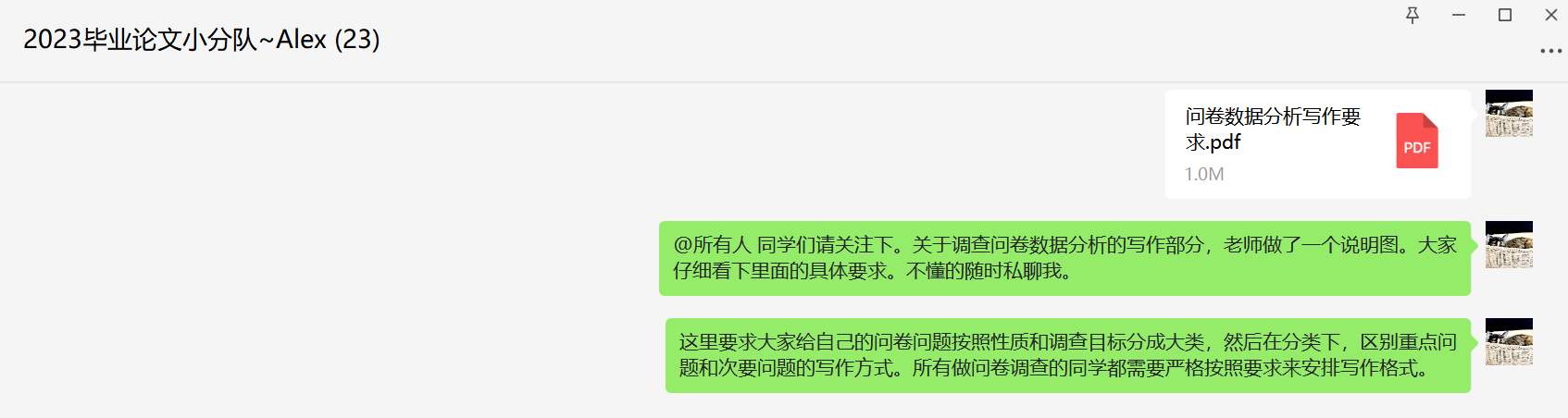 在寒假期间中,杨欣达老师对于本科毕业生论文指导工作也不敢放松,通过线上集体指导共性问题和一对一指导个性问题等方式与所指导的学生保持有效交流与沟通。针对学生毕业论文中存在的共性问题,做出指导PPT和总结,积极给学生提供清晰的思路和写作引导方向。通过杨老师的有效指导,学生们的毕业论文阶段任务完成较好,提高本科毕业论文的整体质量。