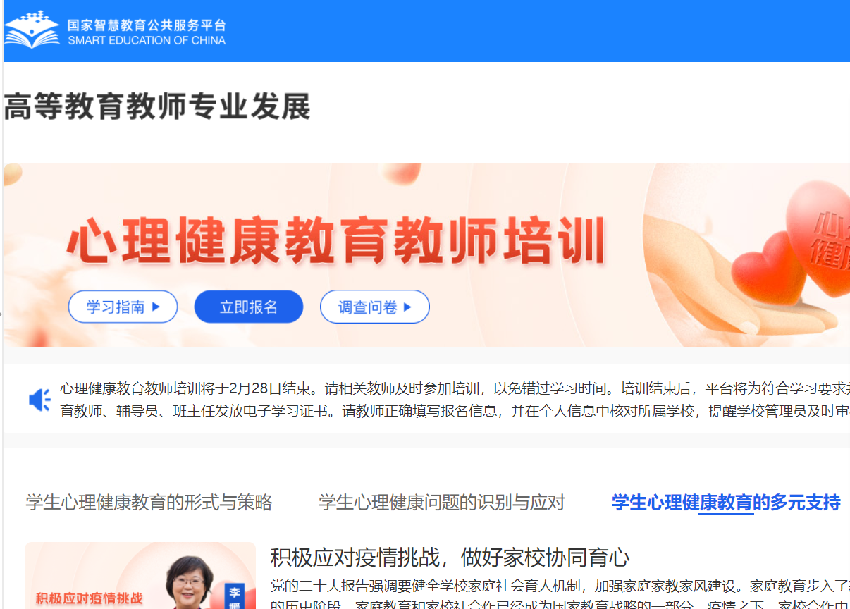 国家智慧教育平台开设的“心理健康教育教师培训”专题