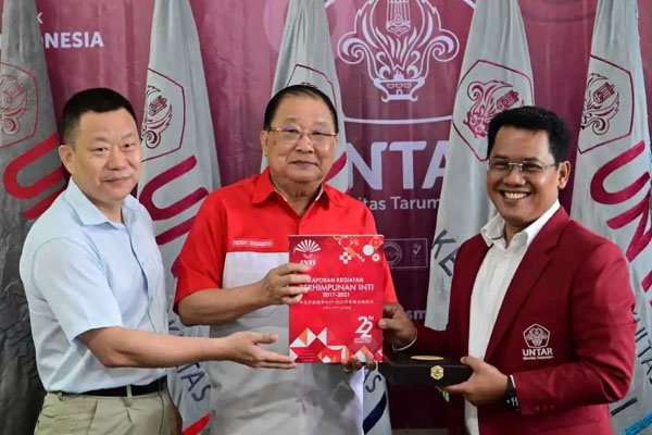 16日,执行校长刘开南教授、印尼华裔总会黄德新总主席、海南省委统战部华侨一处处长刘光新等到访印尼达国大学座谈交流。执行校长刘开南教授与达国大学校长阿古斯教授代表两校共同签署合作备忘录,双方将在科研、师资、人才培养等方面谋求务实合作。