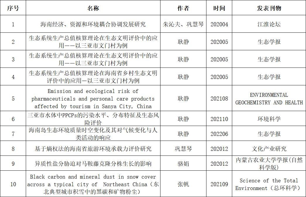 热带滨海可持续旅游管理方向国家社会科学基金项目完成2项,在研2项。海南省自然科学基金项目完成3项,荣获海南省社会科学成果奖2项。该方向聚焦海南生态环境质量变化、海南经济、资源环境的耦合协调发展、海南旅游环境承载力评价、海南生态旅游发展模式研究、三亚市污染水平检测及风险防控等领域,相关研究成果被CSSCI或SCI收录十余篇。