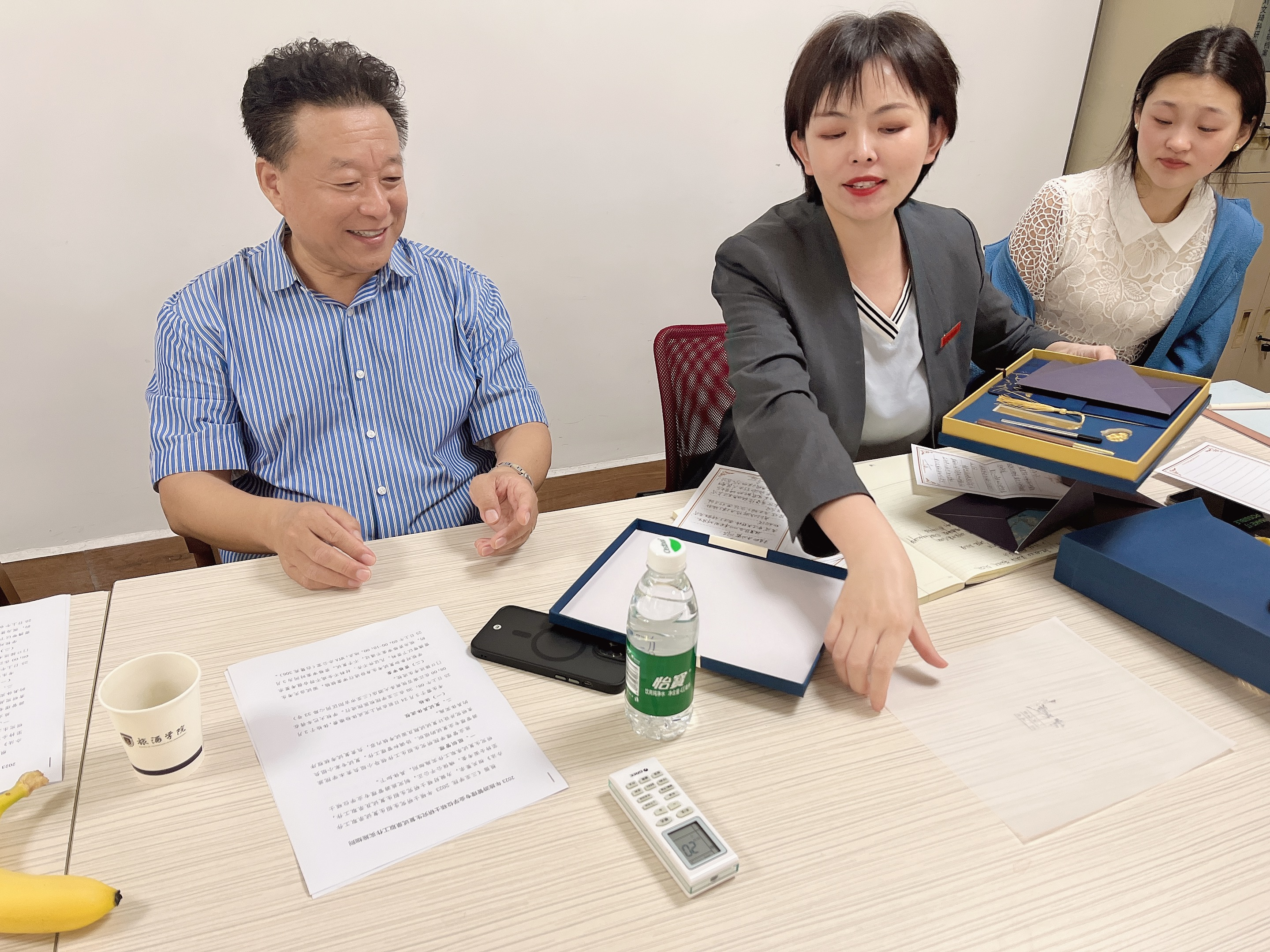 吴吟秋副书记邀请温春阳处长为我院为复试考生准备的礼品进行封存