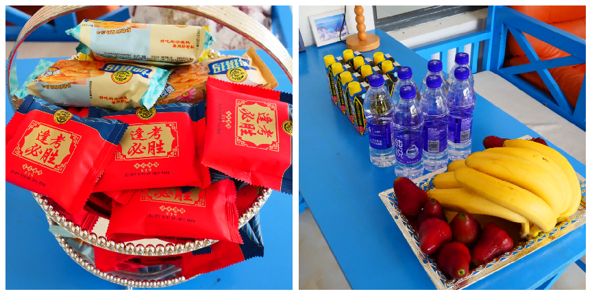 我院在等待休息区为参加复试的考生准备的食品