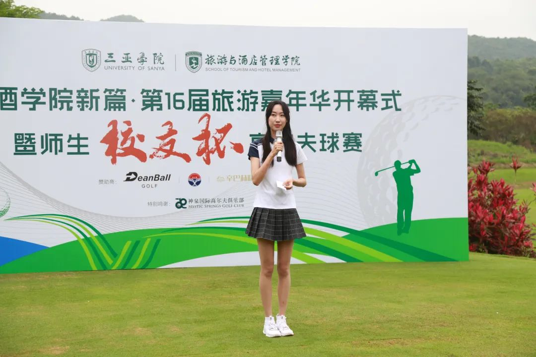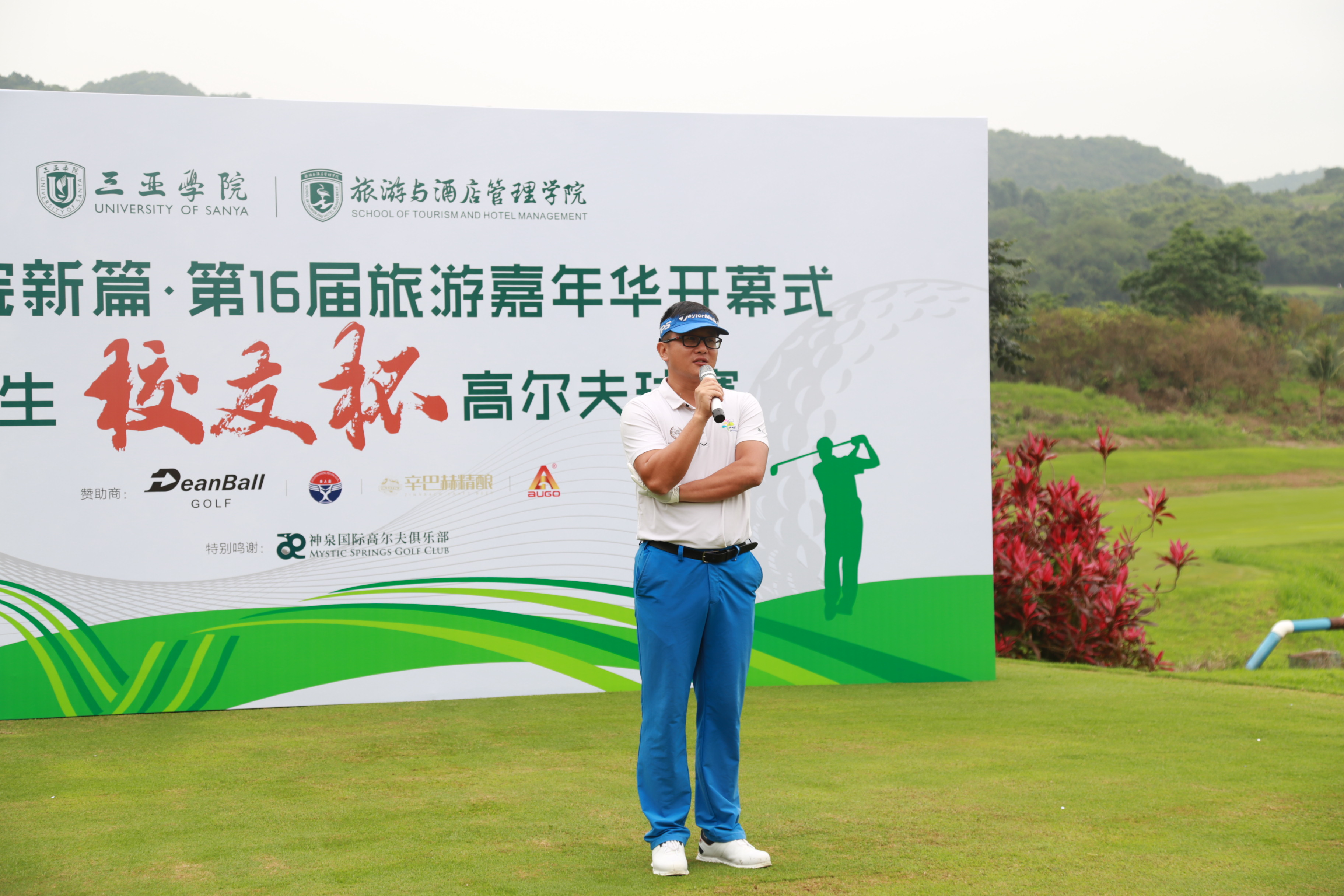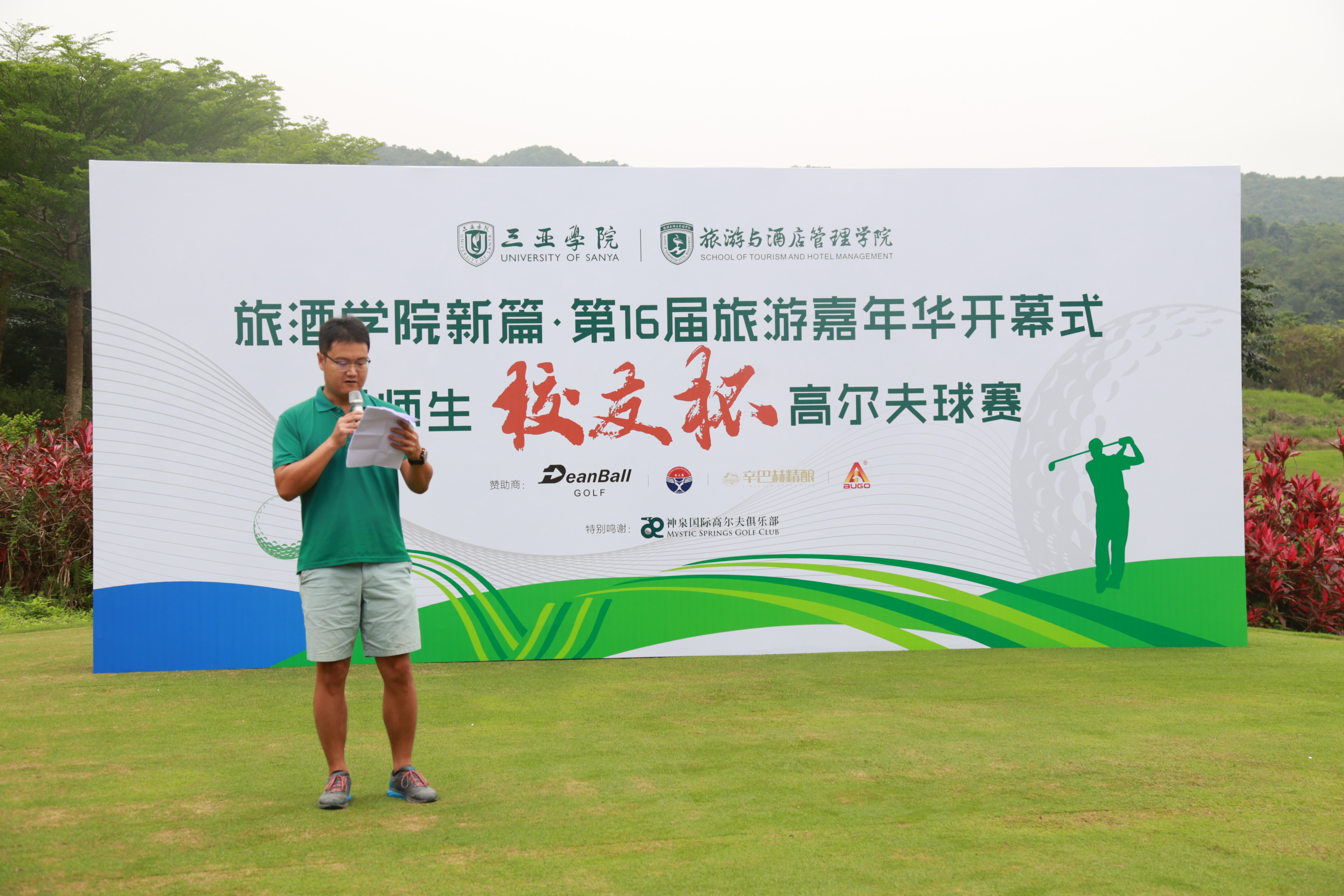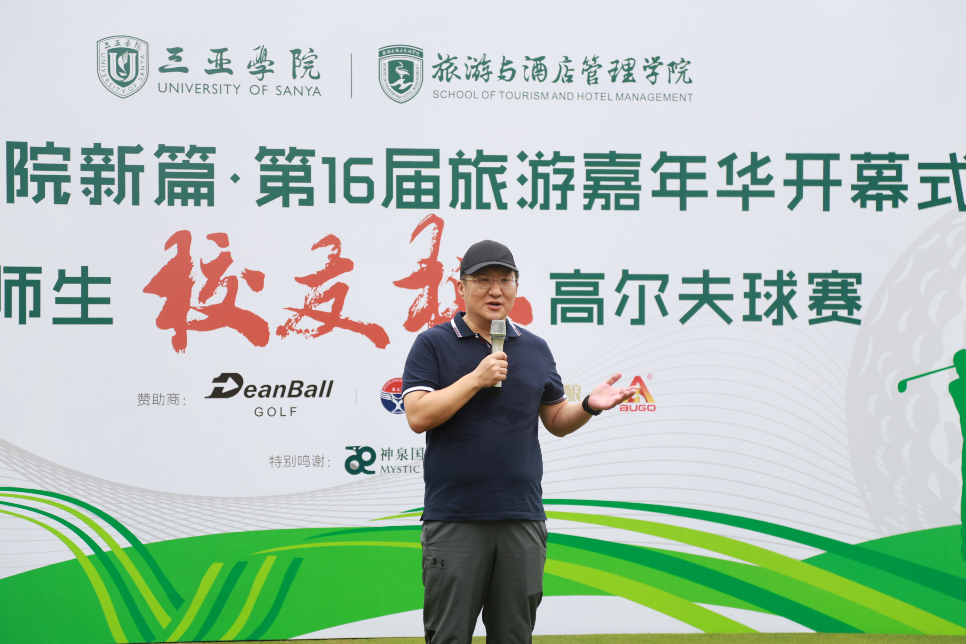 4月16日上午,我院在神泉国际高尔夫俱乐部举办了新篇·第16届旅游嘉年华开幕式暨师生校友杯高尔夫球赛,此次活动由我院21级会展经济与管理专业学生哈妮进行主持。我院院长柴勇为开幕式暨高尔夫球赛致辞,柴勇院长对学校老师、校友以及学生的到来表示热烈的欢迎,他表示:旅游嘉年华系列活动将会陆续开展,各专业也将会举办系列精彩绝伦的比赛活动,体现了我院特色鲜明的“学与乐”相结合的育人方式,并且通过搭建资源共享平台来实现校企、母校与校友的共赢。