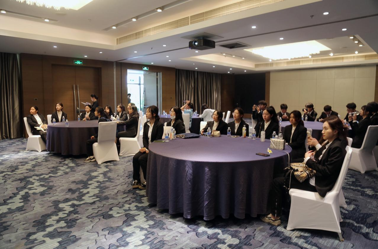 在参观结束后,我院学生受邀至宴会厅,在等待其他学生到来之时,酒店接待人员先为我院学生展示了了各部门的时装秀。在所有人员到此后,酒店经理以自身经历引导,为学生们介绍了三亚山海天大酒店·傲途格酒店的品牌文化。