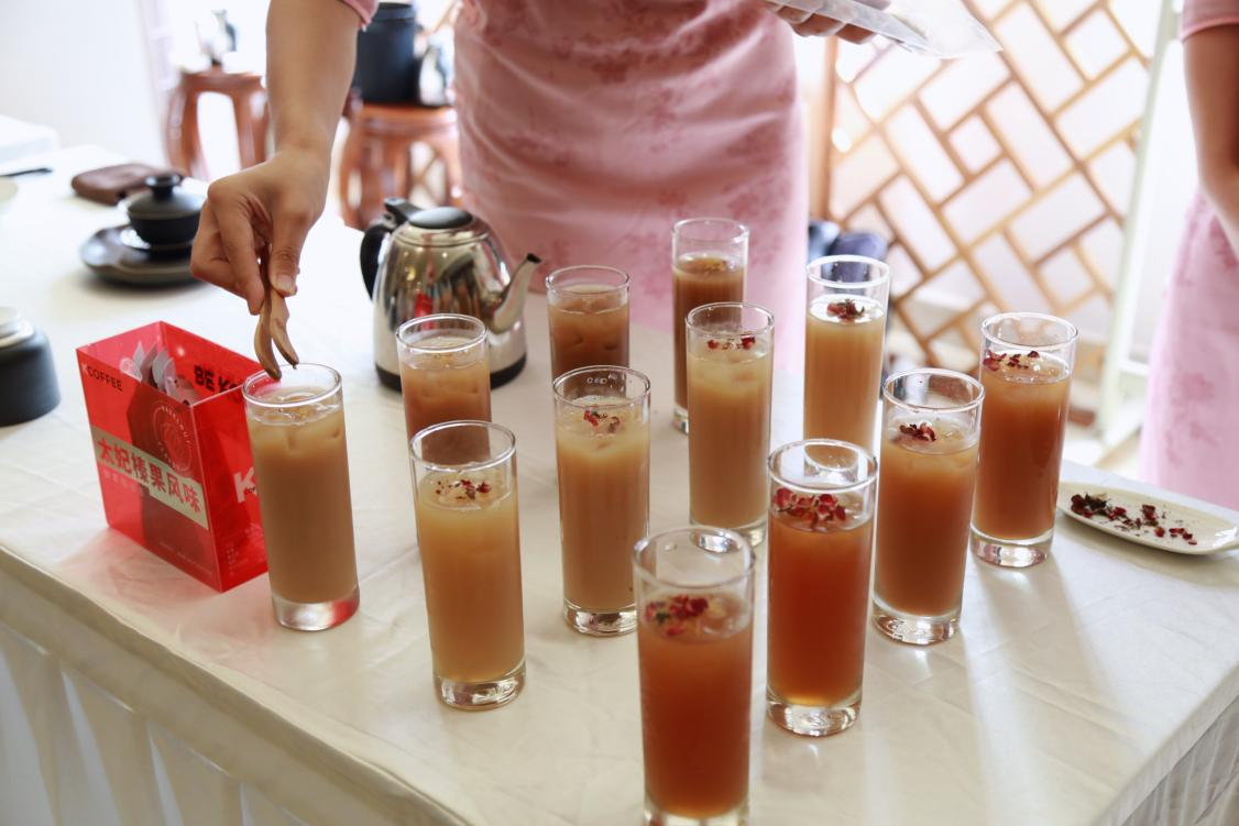 数千年来以,茶成为中华民族的国饮,茶因人而添香,人因茶而增色,而咖啡是作为时代的产物,当咖啡与茶的碰撞时,减淡了咖啡的苦味,其中还有一些茶的香气留于齿间,在第一分会场的茶艺社团为大家带来茶艺表演,并请老师品尝,随后由老师做出点评。