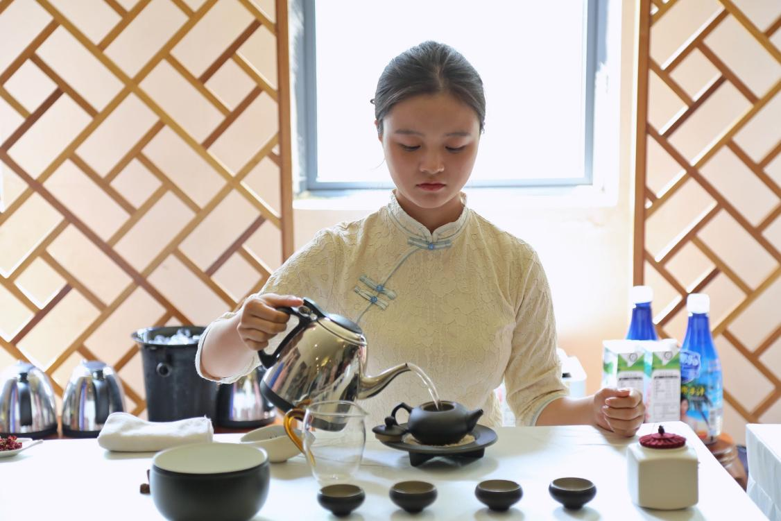 茶艺社团成员展示茶艺
