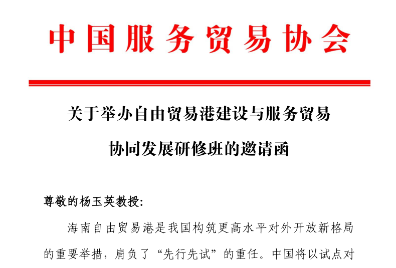 中国服务贸易协会邀请杨玉英教授参加研修班