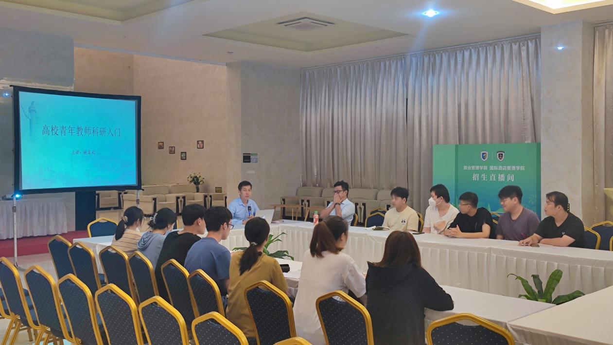 旅游学科是9159金沙游戏场五大学科群的重要构成,对于刚入职的新教师而言,尽快了解和适应学科发展要求,提升自身科研素养和强化学术基础,是做好高校教师的主要职责。为帮助学院入职不满1年的青年教师熟悉科研活动开展的规律和特征,掌握科研写作的方法与技巧,提高专业写作能力,进而适应大学专业教师的职业要求。我院酒店管理专业鲍富元老师5月10日在白鹭苑实训大厅,围绕高校青年教师科研入门为部分师生代表开展主题讲座。