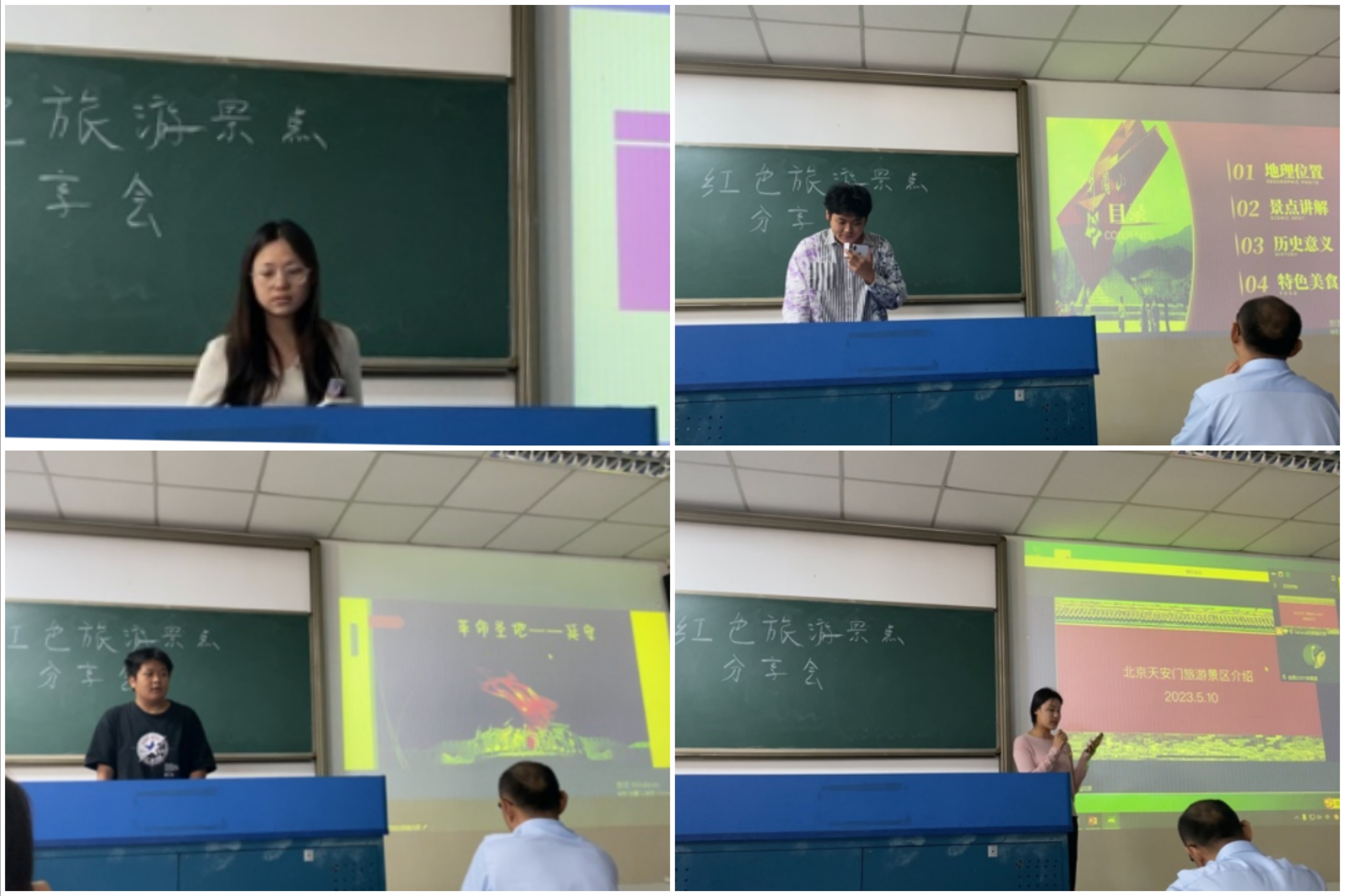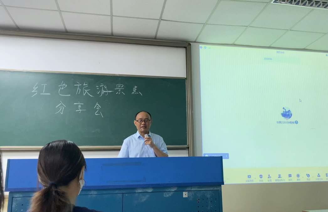 为赓续红色血脉、讲好红色故事,树立同学们爱国主义情怀,将课程思政融入课程教学,根据《旅游接待业》课程实践教学计划,旅酒学院会展专业老师于5月10日周三上午1、2节课组织大一新生会展2201班学生开展红色旅游课程思政分享课程。
