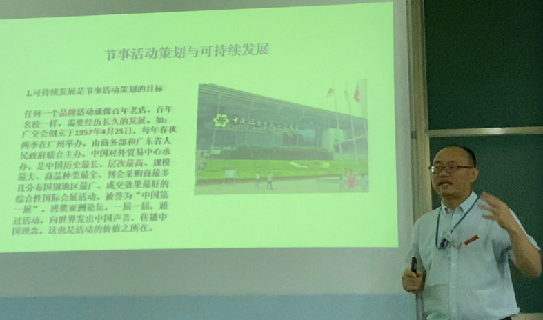 《会展策划与管理》课程作为会展专业的核心课程,承担着树立专业学生社会主义核心价值观教育和中华优秀传统文化教育。课程通过讲述我国展会发展历程与取得的成就树立民族自豪感,引导学生树立道路自信,进一步提升爱国情怀。会展活动策划依托于地方产业发展和经济文化现状,并将可持续发展作为会展策划的目标,树立学生的科学精神、创新意识和正确的价值观。为进一步检验学生对课程思政元素的把握,会展2101班开展了会展策划案与可持续发展分享会。学生们分小组进行了汇报,积极展现科学精神和创新意识。