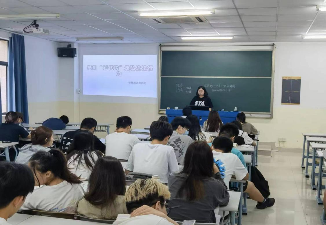 智慧旅游2101班宣传委员正在为学生们开展班会