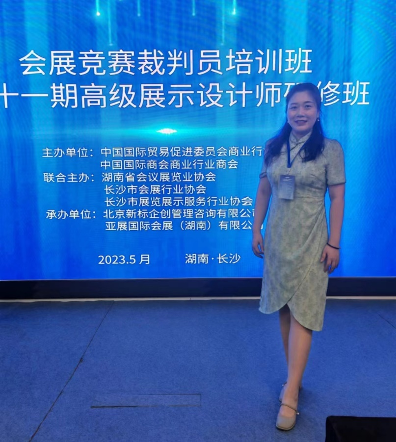 为提升会展类专业教师竞赛辅导能力,加快推动会展业应用型、复合型和创新性人才培养,我院会展专业教师朱俭,于2023年5月26日至31日参加了会展竞赛裁判员培训、会展竞赛辅导能力提升暨第十一期高级展示设计师培训。本次研修班由中国国际贸易促进委员会商业行业委员会、中国国际商会商业行业商会主办,湖南省会议展览业协会、长沙市会展行业协会和长沙市展览展示服务行业协会联合主办。此次培训活动共有来自全国近70所高校会展专业教师112人和省内20多家会展企业展示设计从业人员26人共138人参加培训。