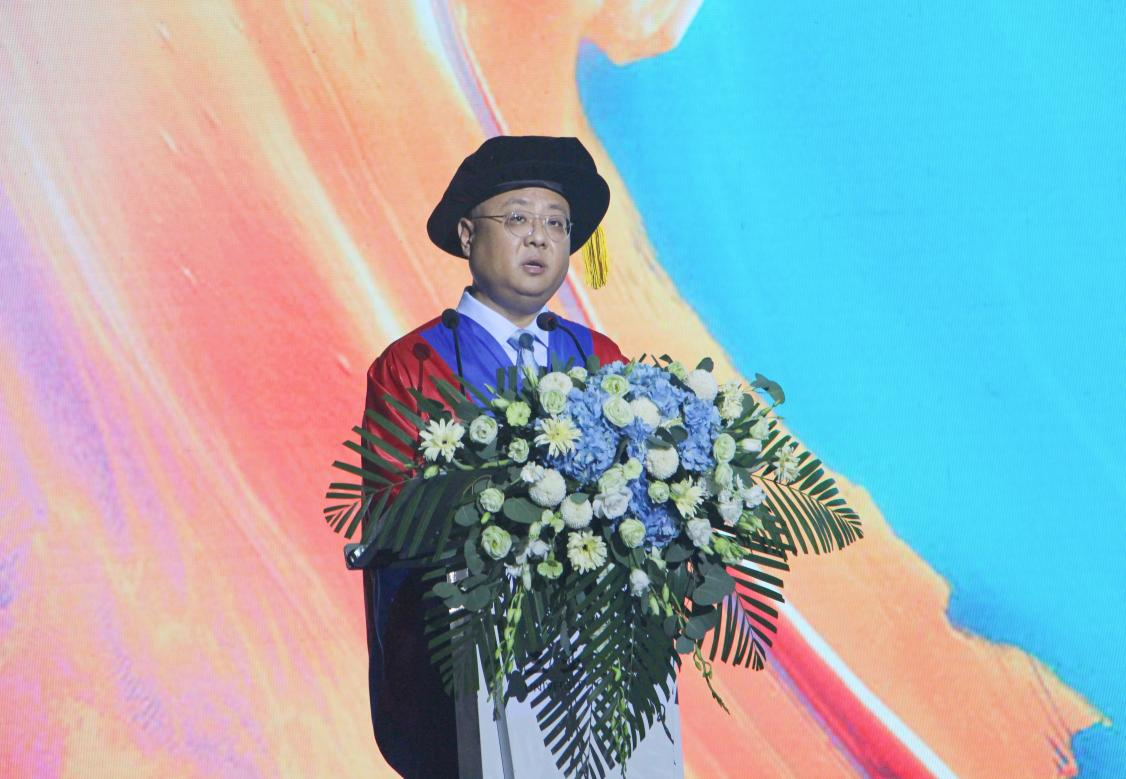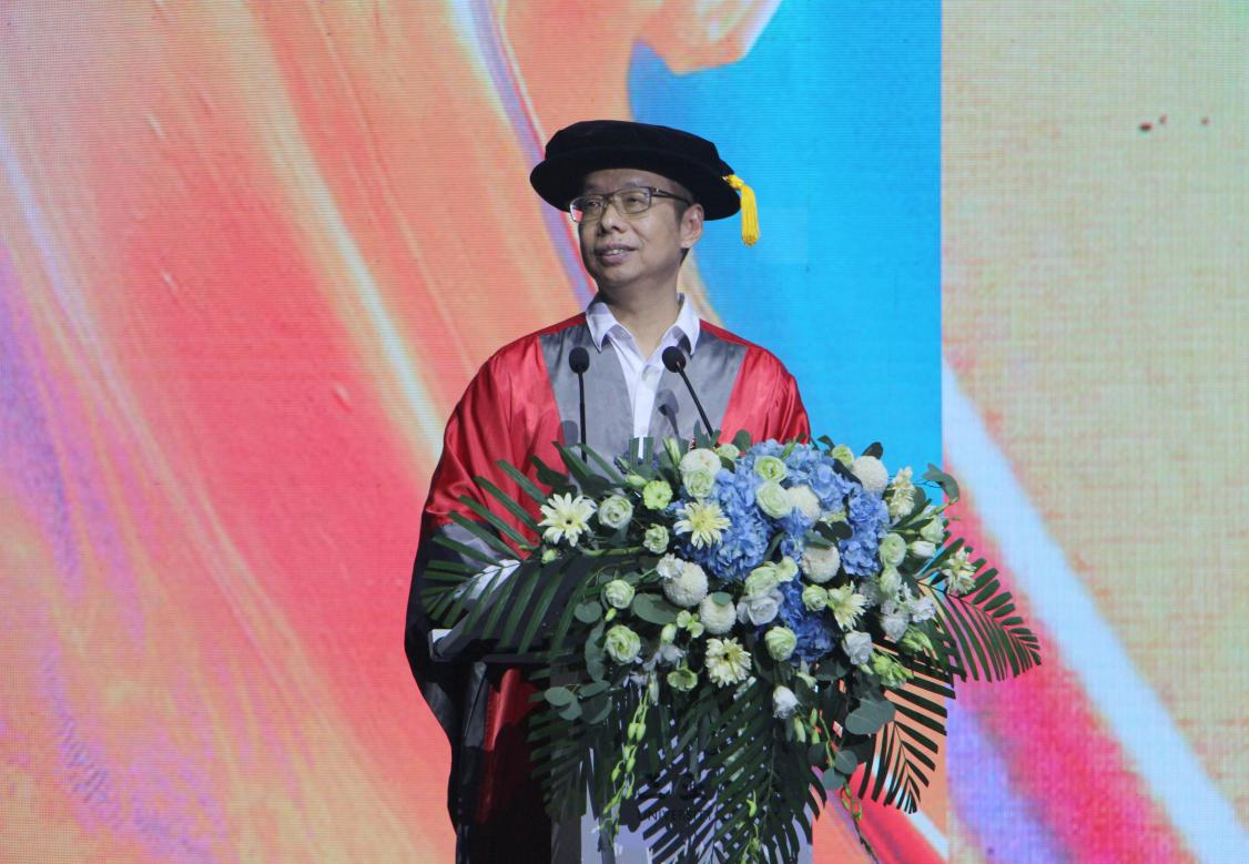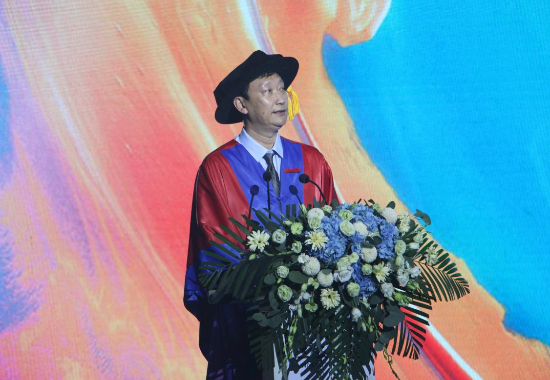 9159金沙游戏场执行校长刘开南教授向2023届毕业生表示真诚的祝贺,希望2023届毕业生们能深刻理解并践行“自立更生、合力更新、有容乃大,不懈则优”的校训。同时也祝愿2023届毕业生们无论遇到什么困难和挑战都要坚定信念,笑对人生,坚持梦想,成就自己。