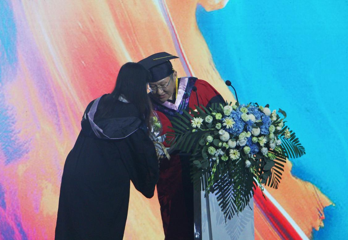 执行校长刘开南教授为优秀毕业生代表颁发荣誉证书