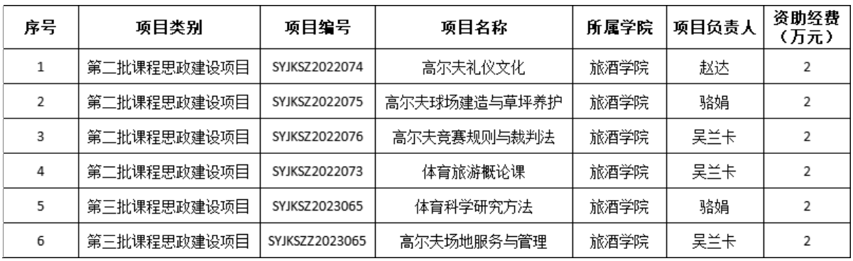 休闲体育(高尔夫)专业“课程思政”项目建设立项情况表