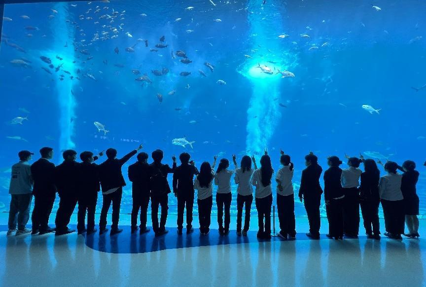 酒店专业学生在亚特兰蒂斯酒店水族馆合影