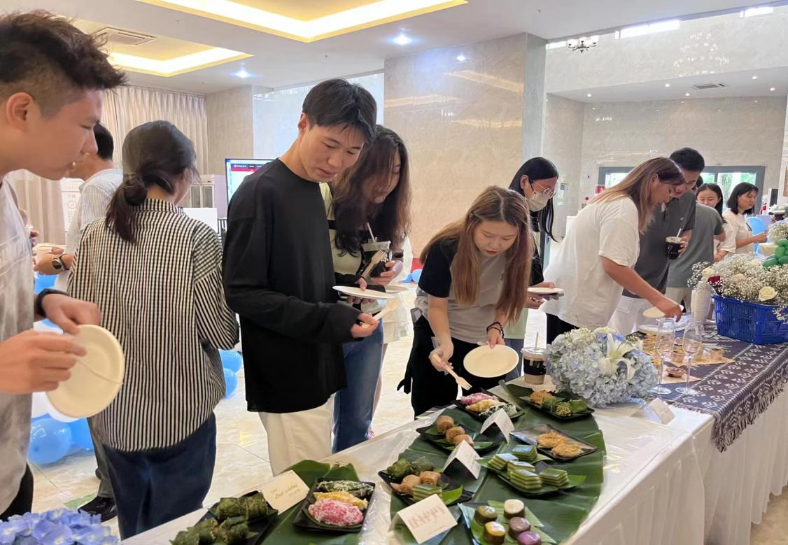 在分享会中还设计了精美又具特色的茶歇环节,会展(专升本)2201班的学生们还亲自制作了具有海南特色的杂粮糕点,赢得了现场观众与老师们的好评
