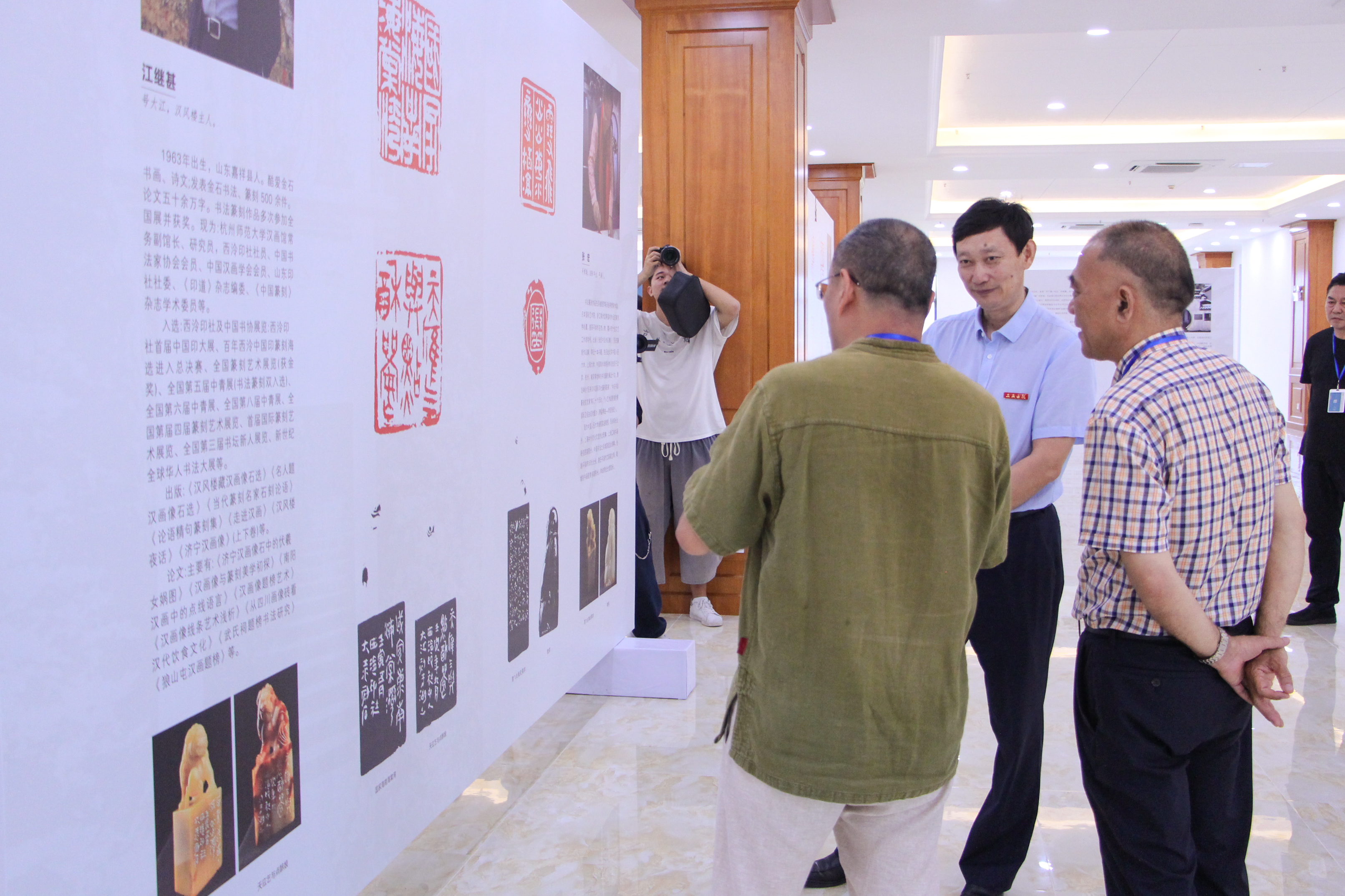 开幕式后,与会领导、艺术家、书画篆刻爱好者开始参展、欣赏作品,并交流作品创作意境、传统文化,充满了对传统文化的热爱。