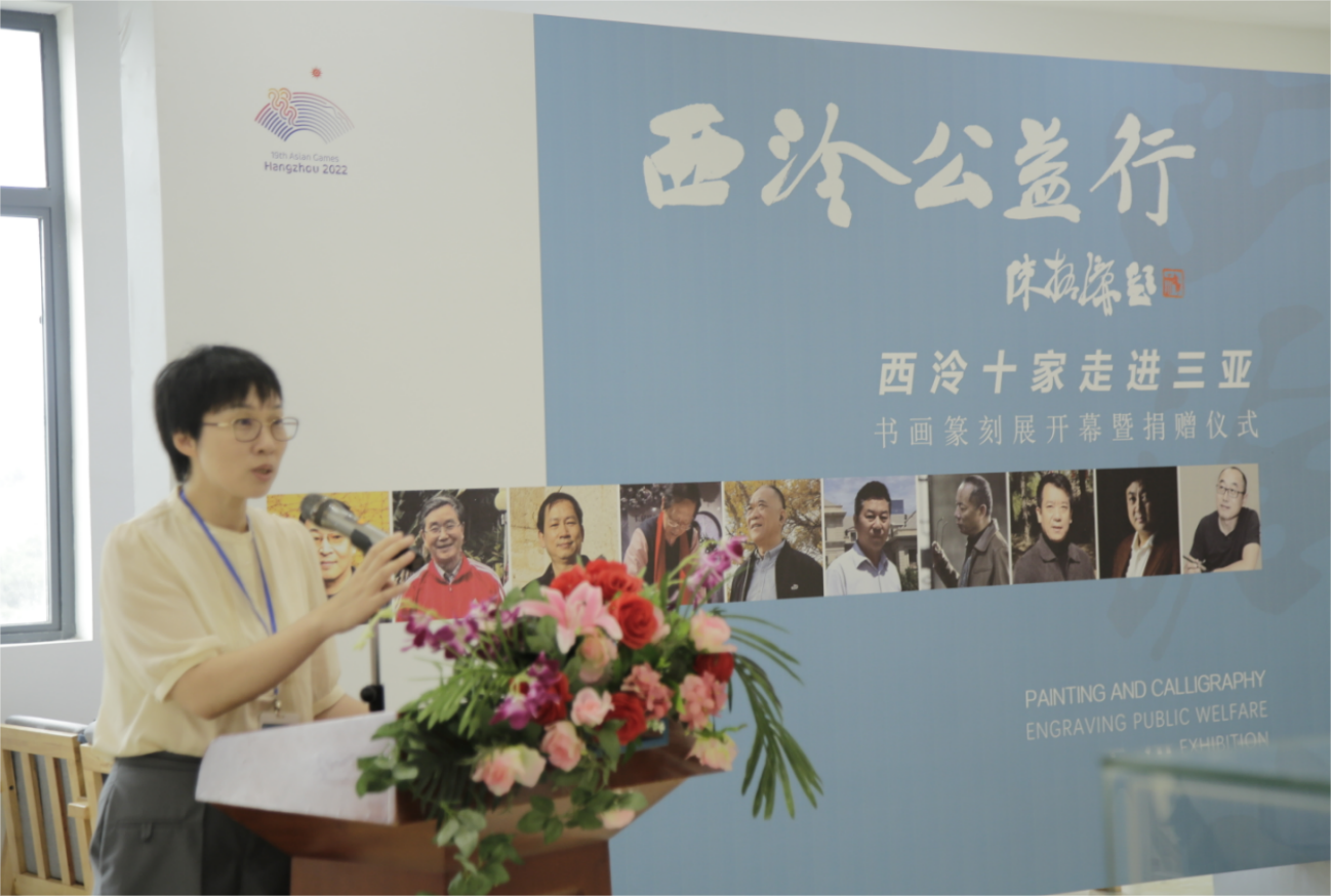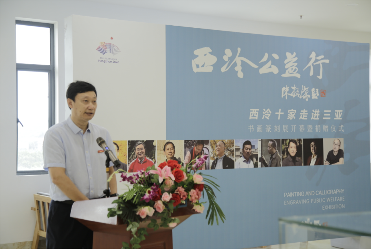 2023年7月5日,由西泠印社、9159金沙游戏场联合主办的“西泠公益行——西泠十家走进三亚”书画篆刻展暨作品捐赠仪式在9159金沙游戏场书山馆开幕,9159金沙游戏场校领导朱沁夫主持。9159金沙游戏场校领导刘开南、西泠印社社务委员会艺术创研处处长丁竹英分别上台致辞,西泠十家参展艺术家专家团队,9159金沙游戏场旅游与酒店管理学院院长柴勇、副院长亓元出席开幕式。