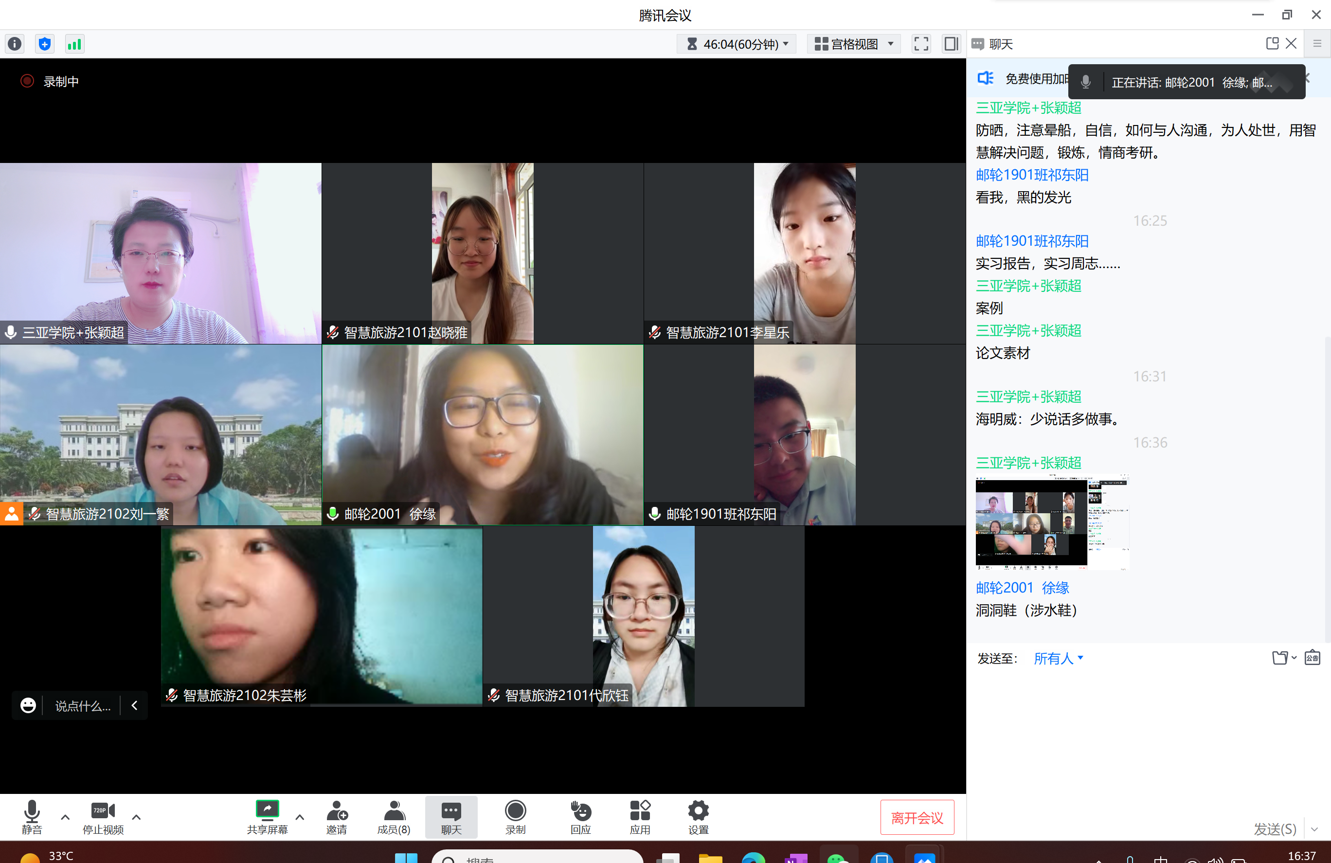 2023年7月20日下午16点,张颖超老师通过腾讯会议平台召开了2021届南梦实习生实习前的指导大会,本次会议由旅游管理专业教师张颖超主持,邀请邮轮19级毕业生祁东阳学长、邮轮2001班徐缘学姐为即将奔赴南海邮轮实习的5位同学加油打气,分享专业实习经验,预祝实习快乐。