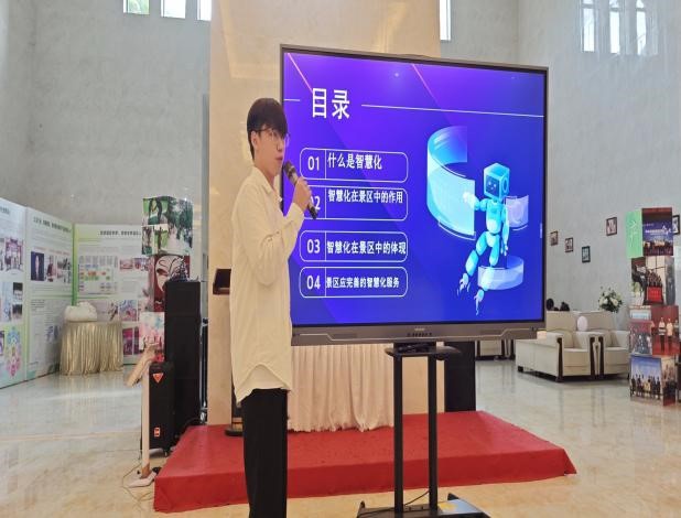 新生们通过此次活动,深入了解和认识到旅游行业的多个方面,同时锻炼了自己的演讲和组织能力。调研内容分为四大调研主题包括:旅游岗位大搜索、大家来找茬、解密景区构成、智慧化在景区中的体现,每组由四位同学进行演讲,以两两PK的形式精彩呈现,评委们对调研内容、演讲模式、视频制作、互动模式等情况予以评判。每个团队充分发挥自己的特长,采用多种方式进行展示,令人眼前一亮。