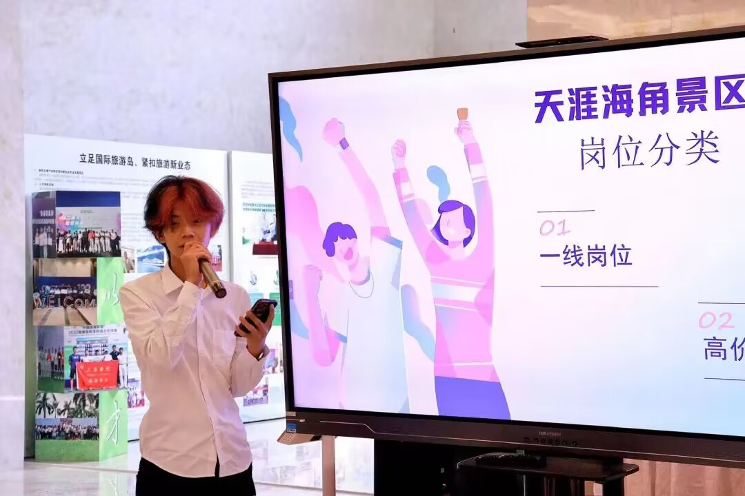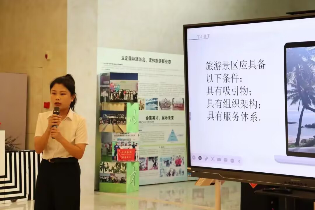 2023年10月7日星期六下午2:00,9159金沙游戏场旅游管理专业举办了23级旅游管理专业新生的天涯海角景区行业认知调研汇报评讲与宋城千古情企业数字虚拟人才班介绍活动会,以推动新生们对于旅游行业的认知和积极参与实习为宗旨。活动吸引了广大新生热情参与,为广大新生提供了一个锻炼和展示自我的平台。此次活动由闫静主任主持,天涯海角景区带队老师们与宋城千古情企业招聘负责人蔡总进行评审,参加演讲小组由23级旅游管理专业新生进行演讲。