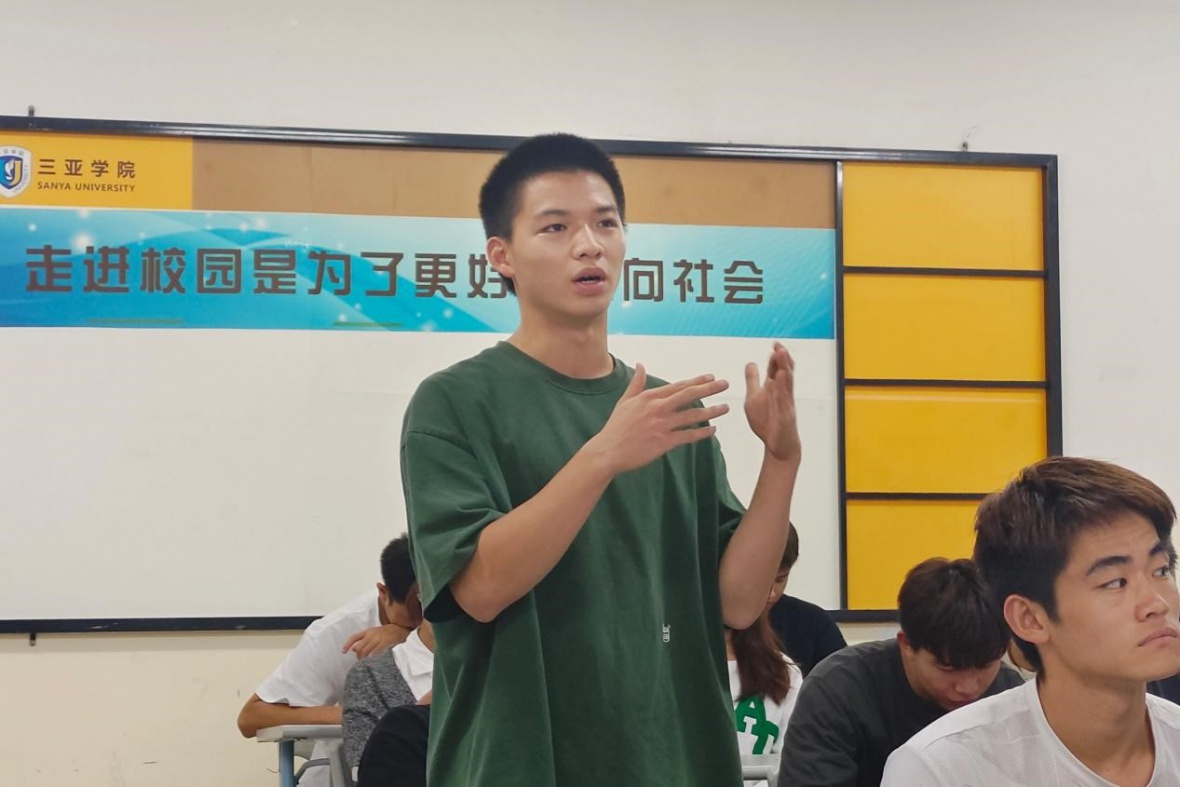 何俊材学长讲述创业的经历,在学校中和一些志同道合的朋友们一块玩,一起想怎么赚钱,打过多次工。后来2011年组建表演团队,在酒店中进行表演,一周可以赚两千元,几个朋友在三亚市解放路开了一家培训班,由于地理位置原因最终以失败告终。2012年去台湾学习知识,学习管理商城。2015年考上公务员,但一心还是想创业。在2017年开始开了几家拳馆,逐步开始做大,也因为疫情原因产生波动。直到现在开始做文化产业。
