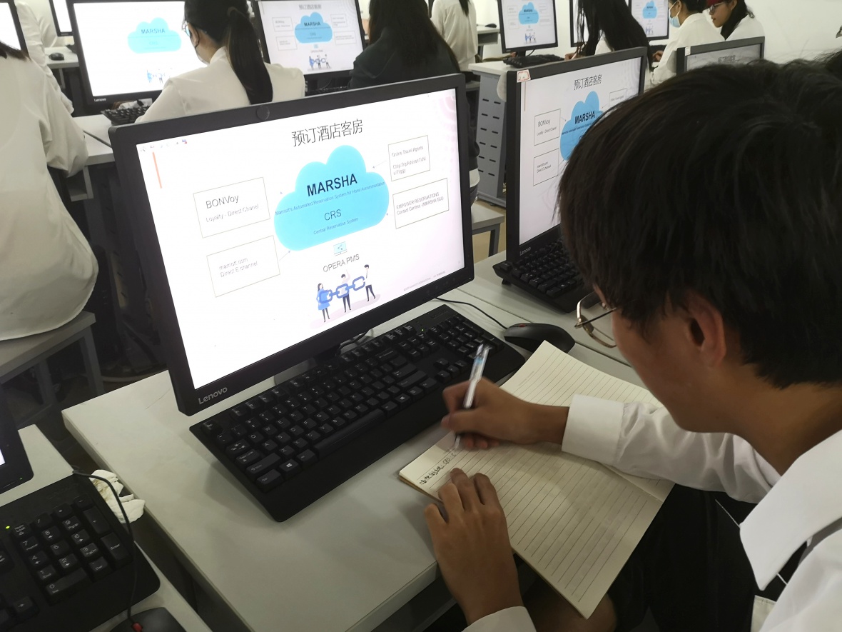耿佳老师表示,酒店专业的核心专业课程《酒店管理信息系统》主要涉及到酒店运营中数字化、智慧化信息技术的集成化管理,校企结合的移动课堂是学生走在酒店业信息技术前沿的一个重要环节,同时也是同学深入领会课程理论教学知识点和开展实践活动的重要方式之一。产教融合下的校企移动课堂不仅营造了沉浸式教学的氛围,还激发了学生学习的兴趣,也在一定程度上培养学生的思维能力和实践能力,为学生们今后在高价值岗位的工作和实践中提供一定的帮助。