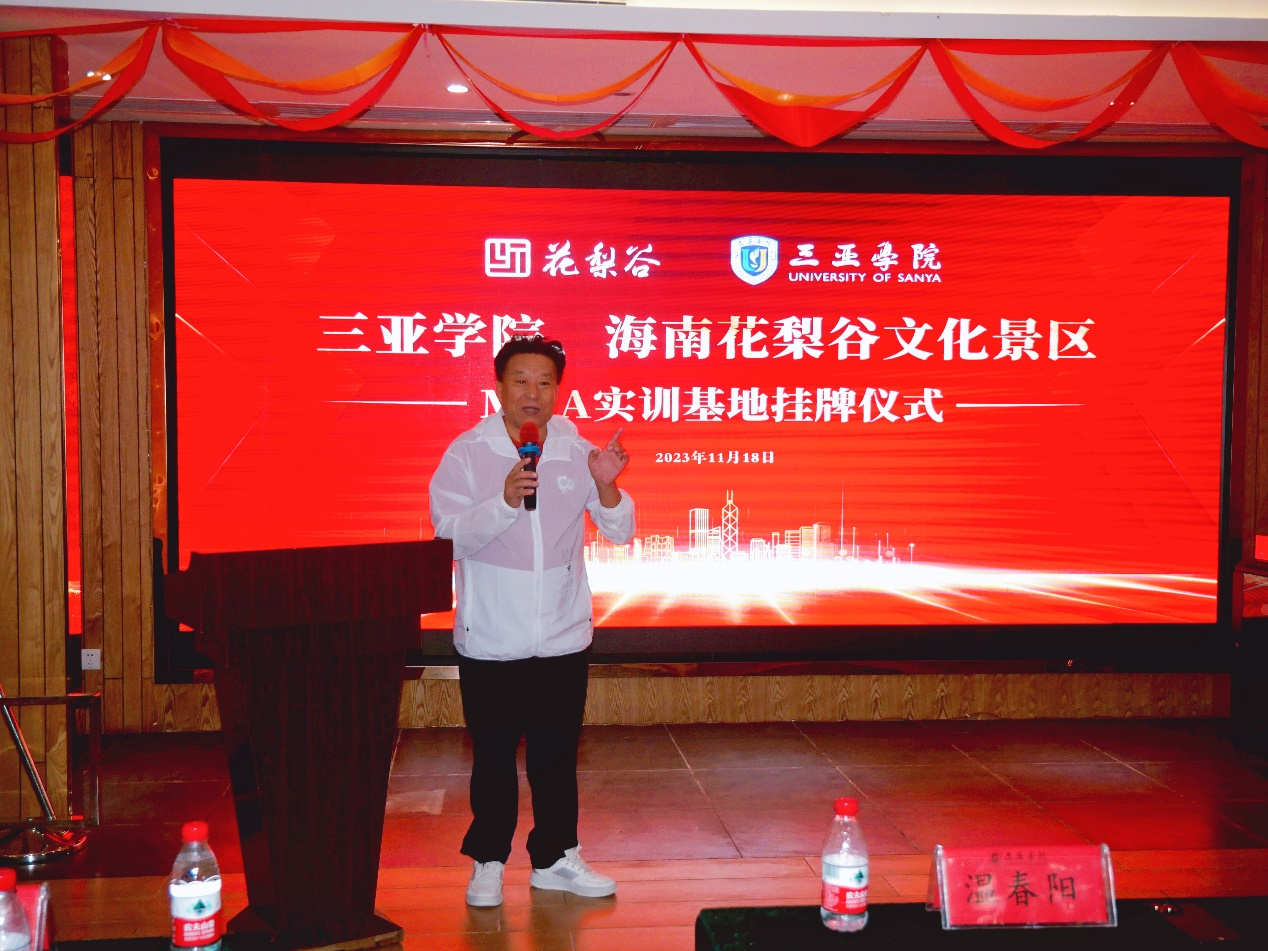 在授牌仪式上,王永涛董事长分享了自己与花梨的深厚缘分及传奇创业历程,介绍了花梨谷在文化推广、旅游和产品开发等方面的卓越成绩和丰富经验,向教师及研究生介绍了海南花梨谷文化旅游发展有限公司的发展模式展现企业经营与发展过程的成功经验,并表达了对未来合作的坚定,王永涛董事长表示,此次合作是推动海南地区文化与教育发展的重要一步,将为学生提供更多实践和就业机会,为海南文化的传承和发展注入新的力量,为社会培养出更多了解海南、热爱海南的人才。
