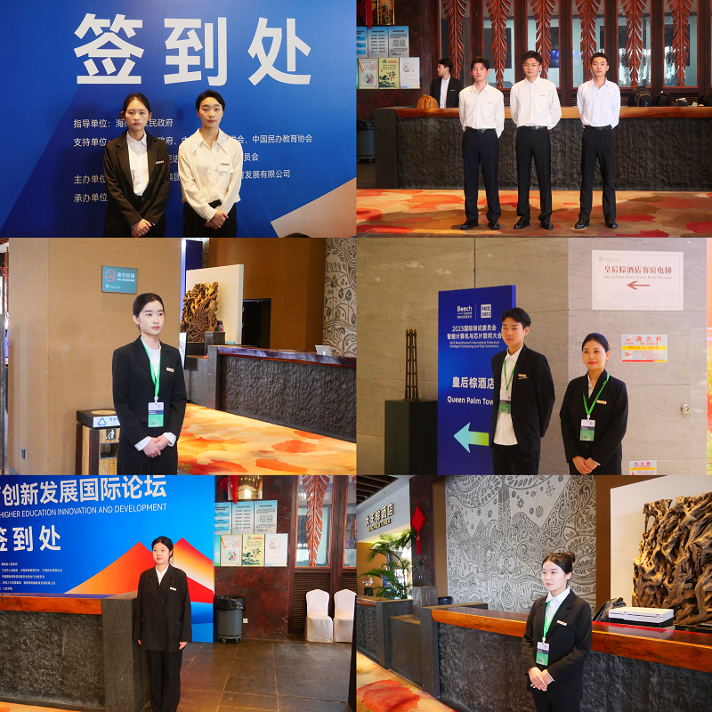 本次海南高等教育创新发展国际论坛,全程由旅游学院和酒店管理学院的师生共同完成。涉及到接机签到、会议流程梳理、会场布置、会场控制和开茶歇准备等相关的各个工作。在工作中,师生们任劳任怨,保质保量的完成了各项工作,在工作中体现了旅酒学院的永争一流的学院理念和学院精神。工作中也深刻感觉到这批成长起来的旅游学院师生能更好的担起旅游行业行业高质量发展的重担!我们非常感谢老师们和同学们,感谢他们对于本次活动的付出,感谢他们的辛勤努力,感谢他们对学校深深的爱恋!