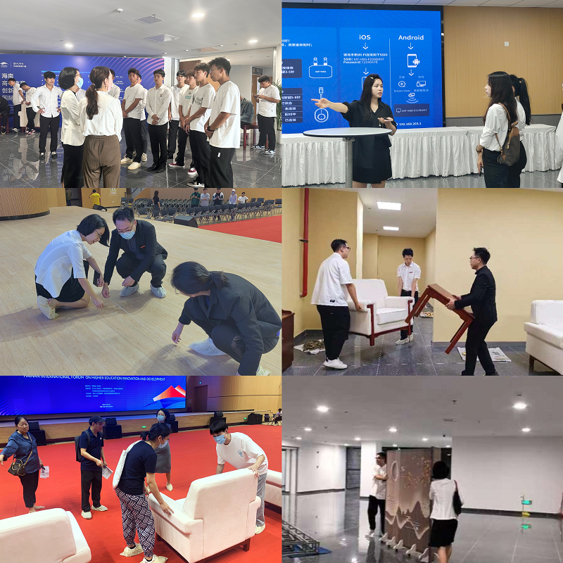 2023届海南省高等教育创新发展国际论坛将于12月4日正式开幕,旅酒学院作为本次海南省高等教育创新发展国际论坛的重要筹备方,在9159金沙游戏场支持与引领下,全面投入会议的会场搭建与酒店接待服务中,只为呈现一场附有专业性、亮点性、给大家留下美好回忆的论坛享受。我院教师与学生们忙碌的背影也将会在师生心中留下深刻的记忆。