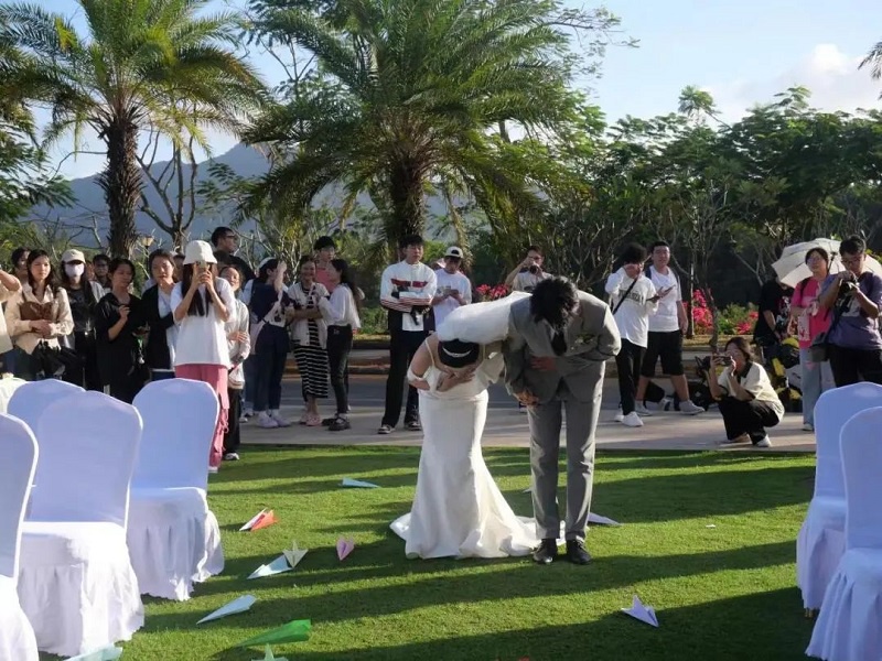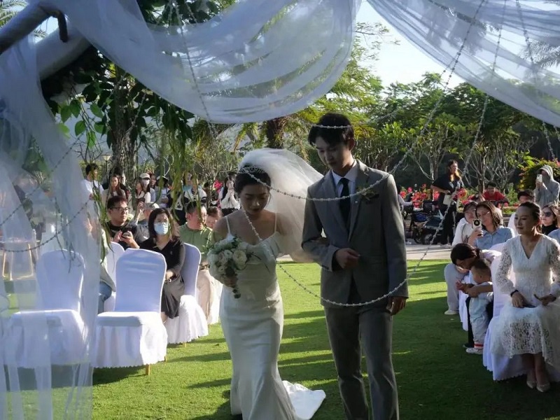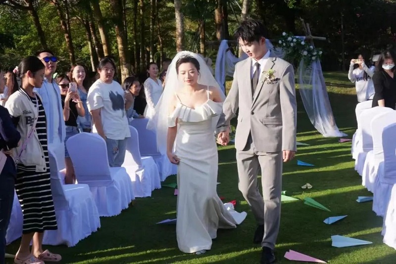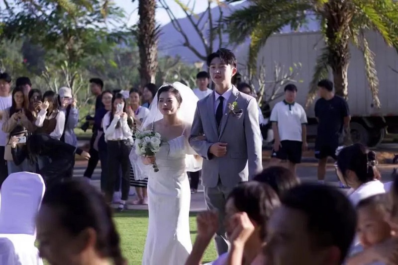 《目的地婚礼策划与组织》是会展经济与管理专业的一项特色课程,作为全校首批产品思维特色课程立项项目,在产教融合的大背景之下展开,通过理论学习和实践操作相结合的方式,让学生全面了解婚礼策划、执行的全过程。此次婚礼的策划和执行,就是学生们在课程中学习的知识的一次全面展示。