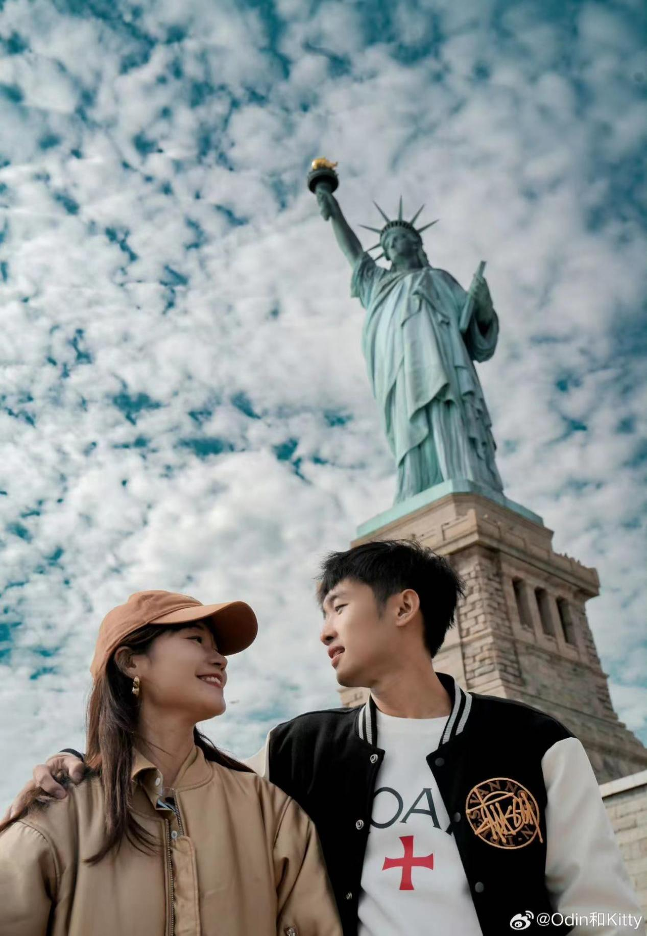 黄俐婷和欧茂森校友在自由女神像前捕捉地美好画面