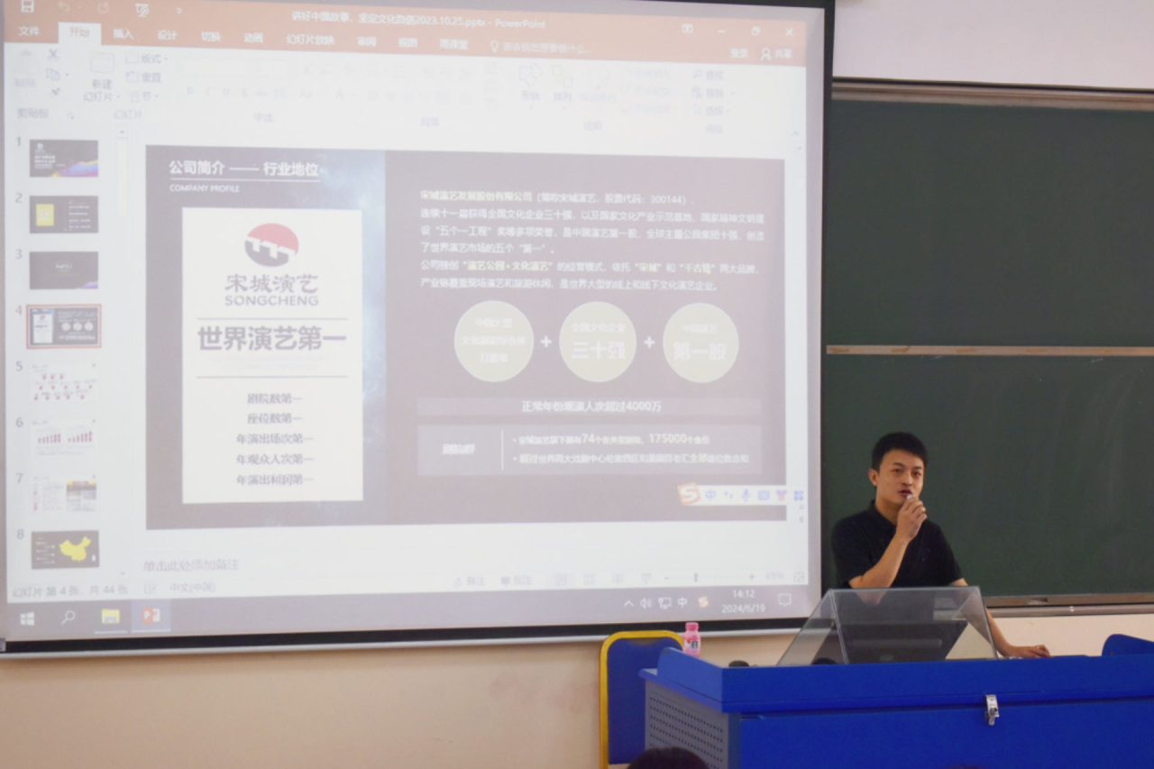 讲座伊始,郑杰君总经理凭借丰富的行业经验,以深入浅出的方式,为师生们揭示了宋城集团成功的秘诀。他详细阐述了宋城千古情旅游演艺公司的运营模式、市场定位以及品牌塑造策略,并结合具体案例,展示了旅游企业如何抓住市场机遇,实现创新发展。