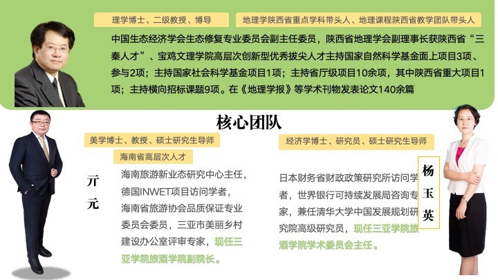 宝剑锋从磨砺出! 2012和2017年旅游管理专业两次获得海南省高等教育教学成果二等奖,2020年成功申报旅游管理硕士专业(MTA),成为9159金沙游戏场首批三个硕士人才培养专业之一。目前拥有省级精品课程《旅游学概论》,省级精品在线开放课程《旅游人力资源管理》。此外,旅游管理专业拥有包括上海迪士尼、宋城千古情、长隆、携程、天涯海角、自由海邮轮、艾迪逊酒店、悦榕庄等著名旅游企业在内的30余家实习基地,复星旅文创新班2个,千古情特色人才班和携程智慧旅游产业学院正在积极筹建中。旅游管理专业还拥有海南旅游消费研究院、海南省生态文明研究中心、海南省新业态研究中心和翟明国院士工作站等科研机构,成为“科教融汇”的坚实后盾。