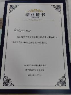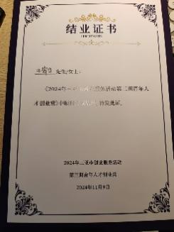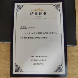 经过一天的学习和交流,活动在顺利完成结业仪式后圆满结束,我院三位同学都获得结营证书。聂明辉等同学表示,此次讲座不仅提升了他们的创业知识和技能,更激发了他们对创业的热情和信心。