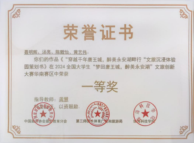 学生荣获2024全国大学生“梦回唐王城,醉美永安湖”文旅创新大赛初赛华南赛区一等奖 | |||||