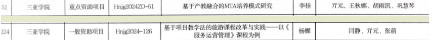为促进专业教学水平的提升,保障课程教学质量,旅游管理专业教师积极参与教学改革项目,同时不断推进数字化课程建设、课程思政建设和芯位课程建设,促进教学与课程改革,累计开展近30门课程项目改革。其中,《旅游项目策划》和《旅游目的地管理》两门课程被海南省教育厅评为海南省第三批一流本科课程;李佳副教授、杨樨老师分别成功获批海南省教育厅教育教学改革项目重点资助项目1项和一般资助项目1项。