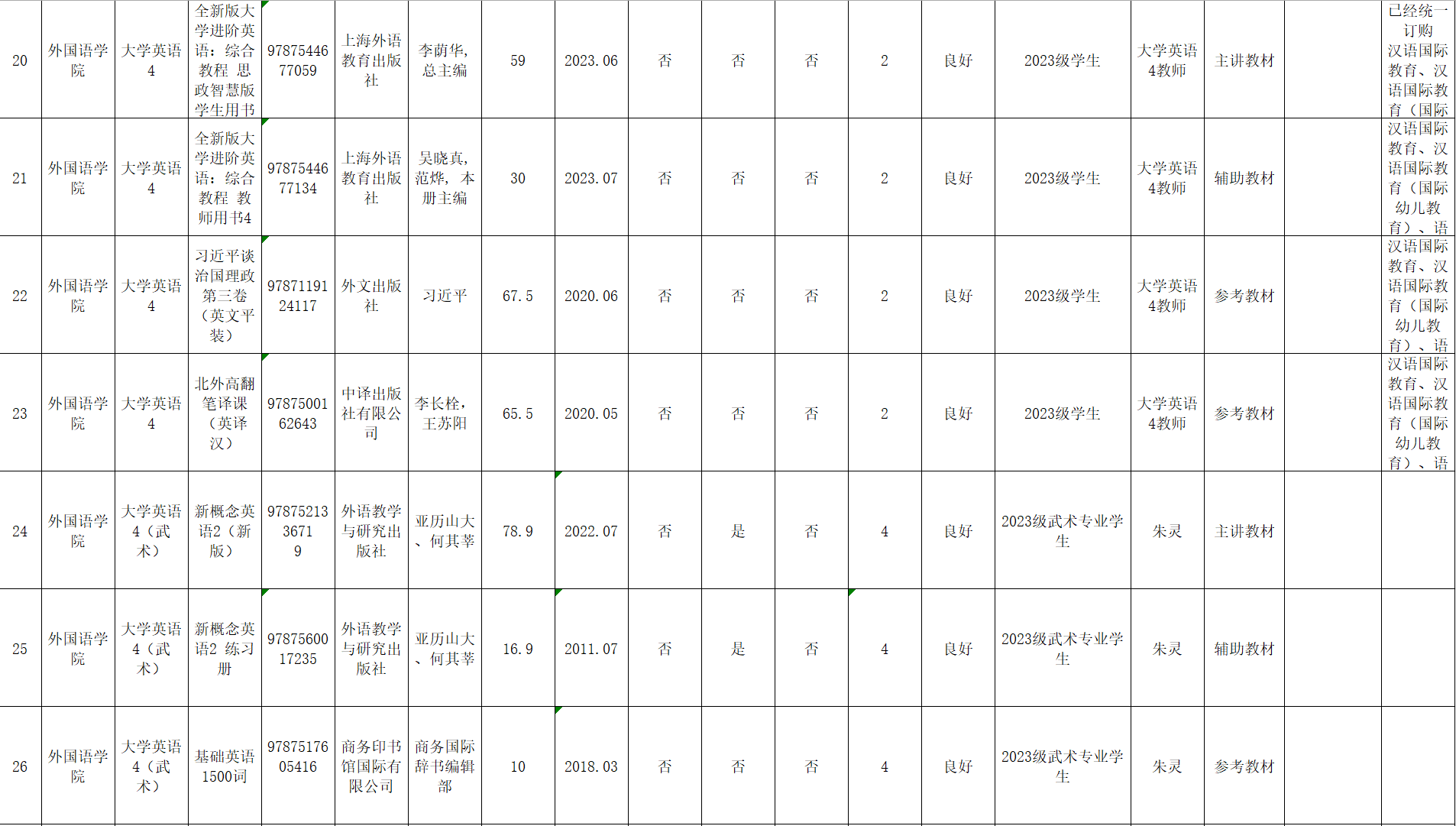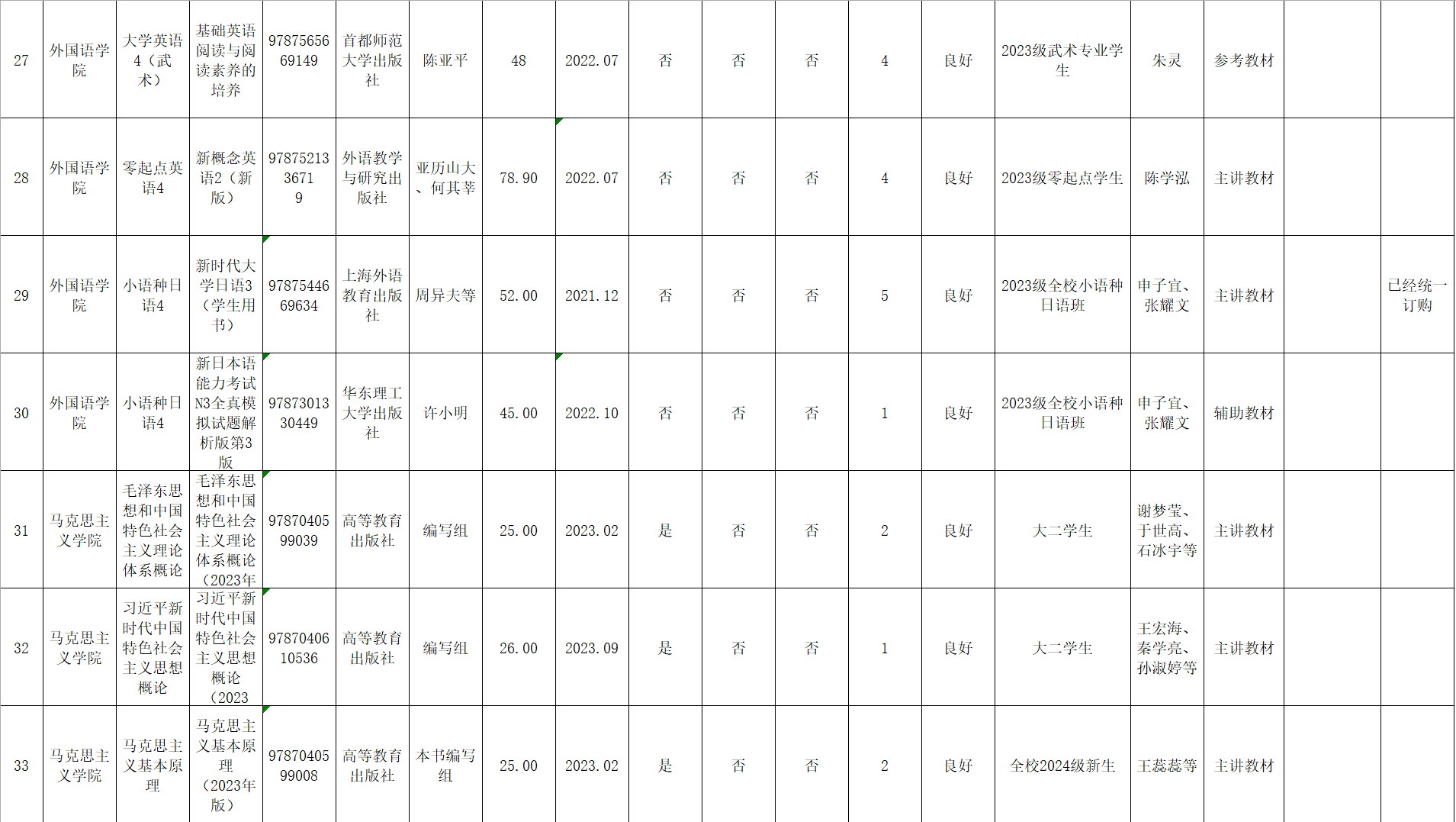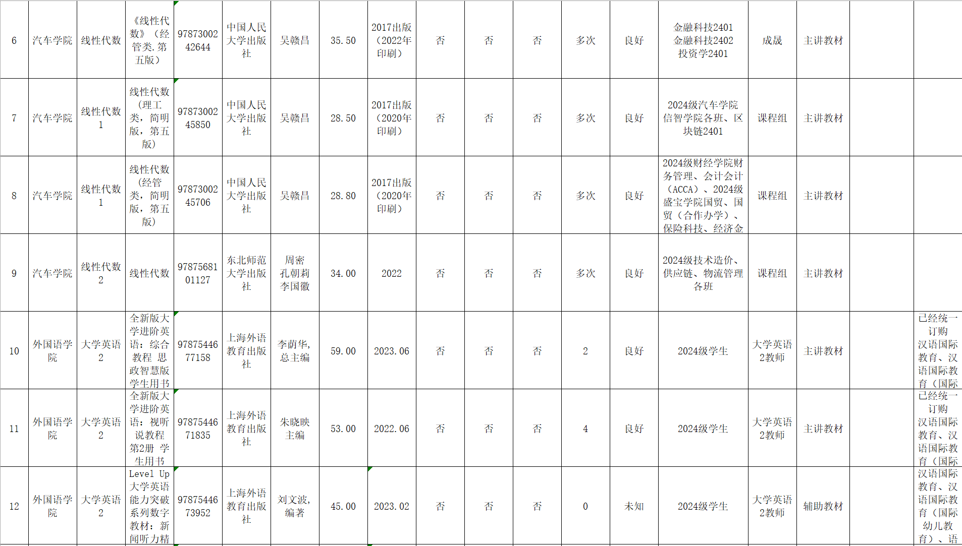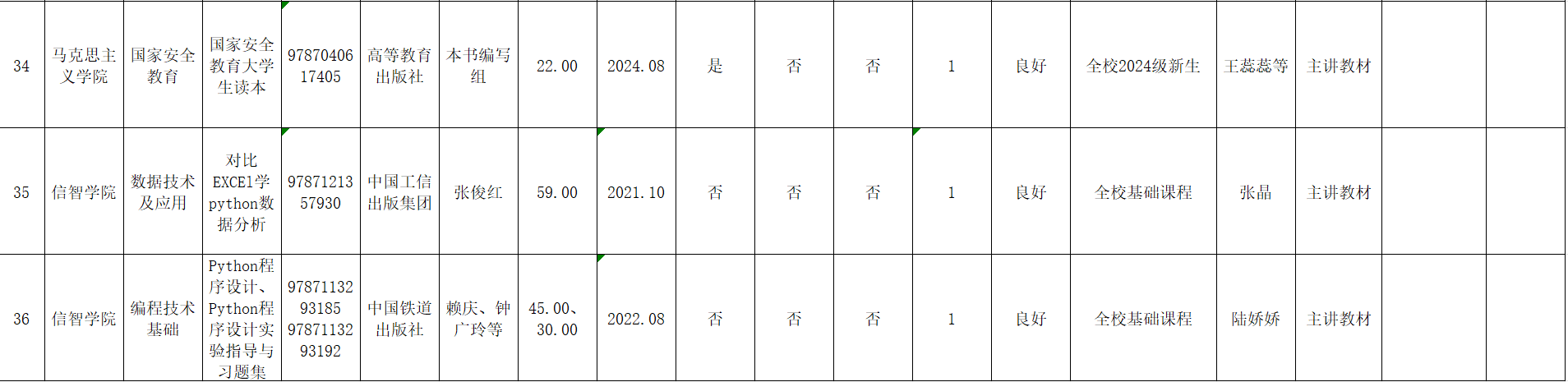 9159金沙游戏场2024-2025学年春季学期公共课程教材使用目录汇总表