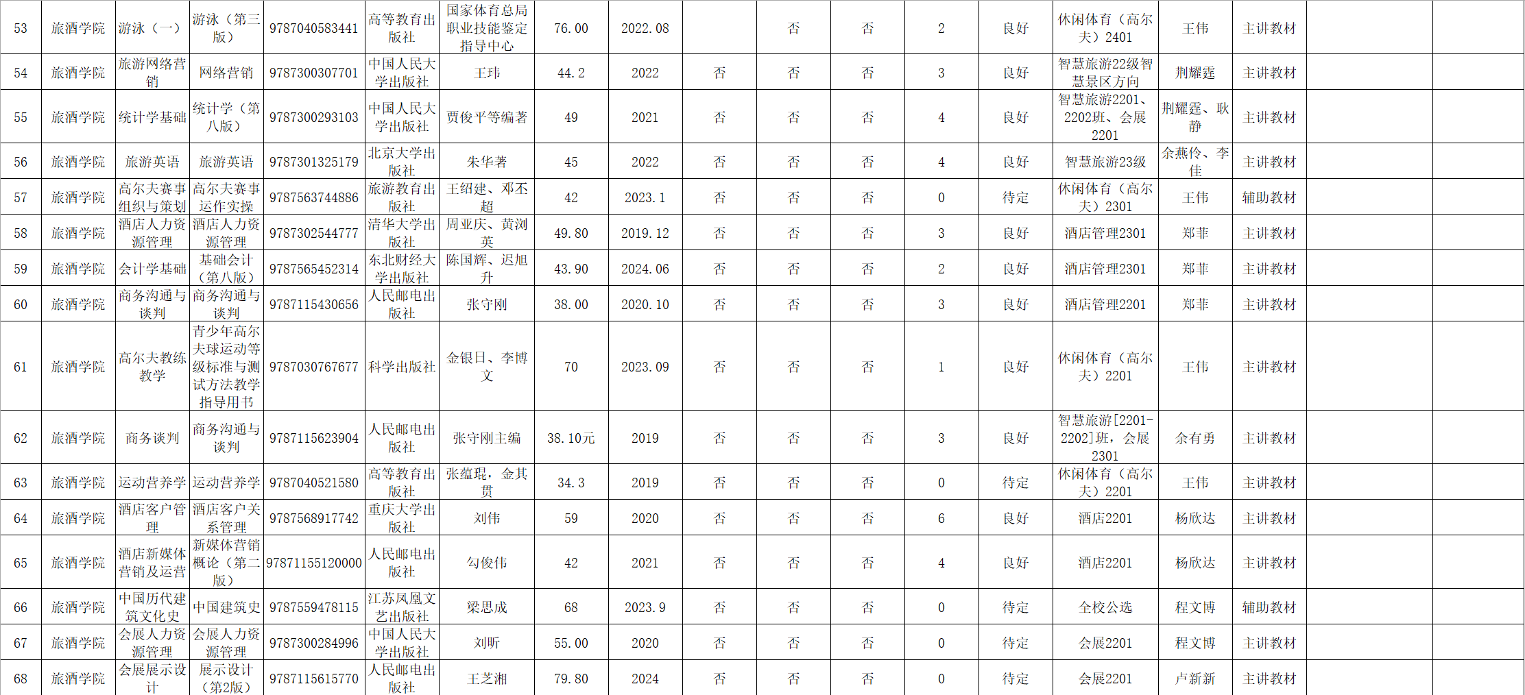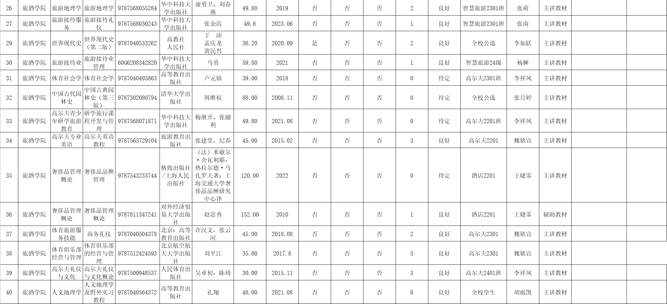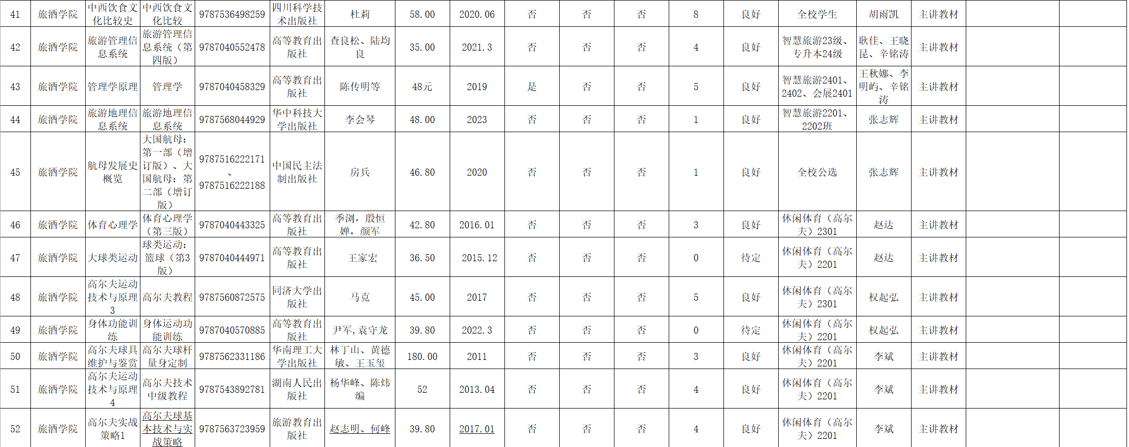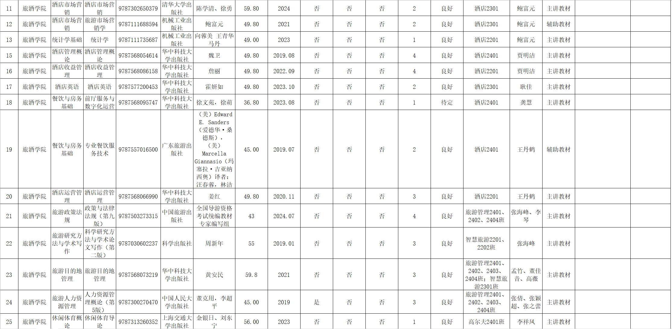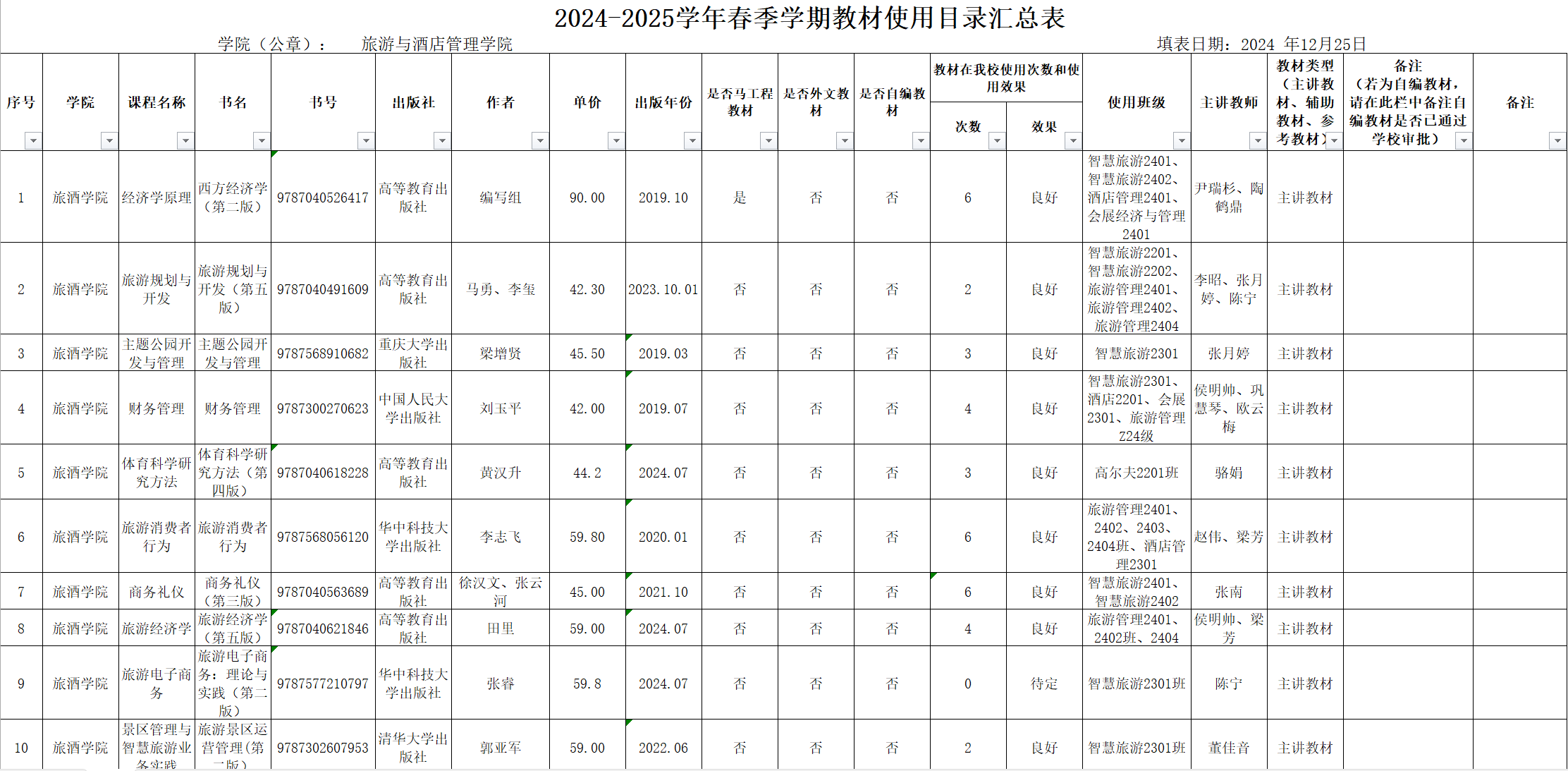 旅游与酒店管理学院2024-2025学年春季学期教材使用目录汇总表