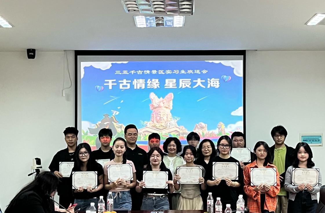 近日,旅酒学院智慧旅游22级的17位同学在三亚千古情景区近8个月的实习生活圆满结束。为了庆祝这一重要时刻,千古情景区人力资源总监蔡帅帅特意为所有实习生们举行了一场温馨而隆重的欢送会。我院旅游管理专业王秋娜主任和实习指导老师巩慧琴也应邀出席,共同见证了实习生们的成长与收获。