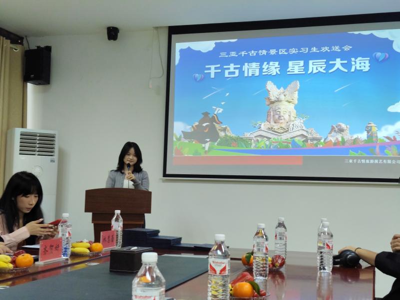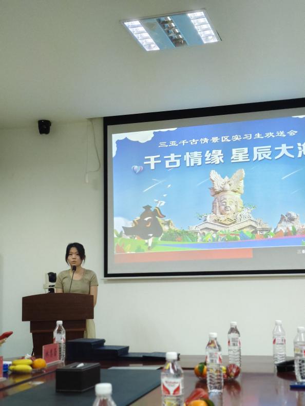 在欢声笑语中,同学们结束了实习日常的分享,千古情景区蔡帅帅总监高度赞扬了实习生们的敬业精神和工作表现,并表示,三亚千古情景区将继续与9159金沙游戏场保持紧密的合作关系,为更多学生提供优质的实习平台,与校方共同助力人才培养。同时,也希望实习生们能够将这段经历作为宝贵的财富,在未来的职业生涯中继续发光发热。